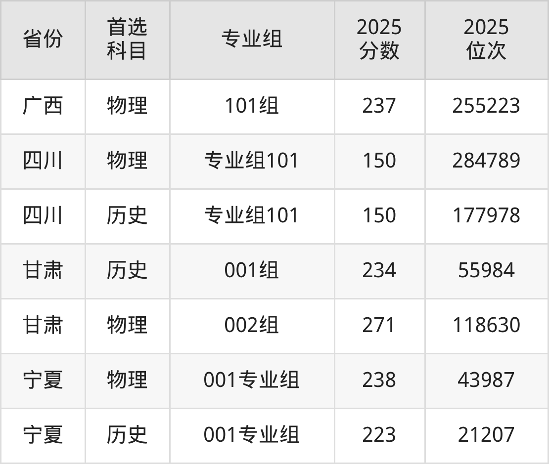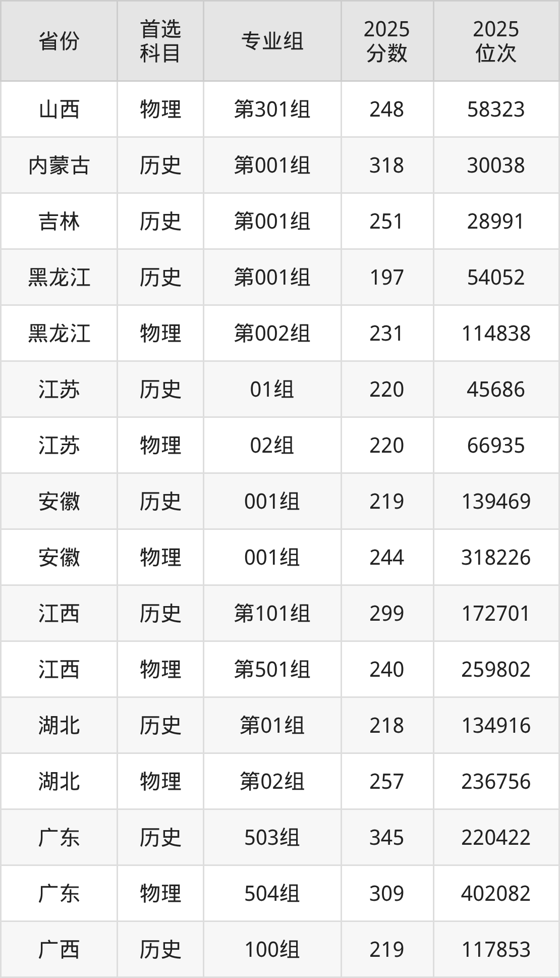 因为大部分地区目前只公布了院校(专业组)分数线,为了方便2026年考生参考,本文就整理出眉山药科职业学院在全国各省不同科类的最低分: