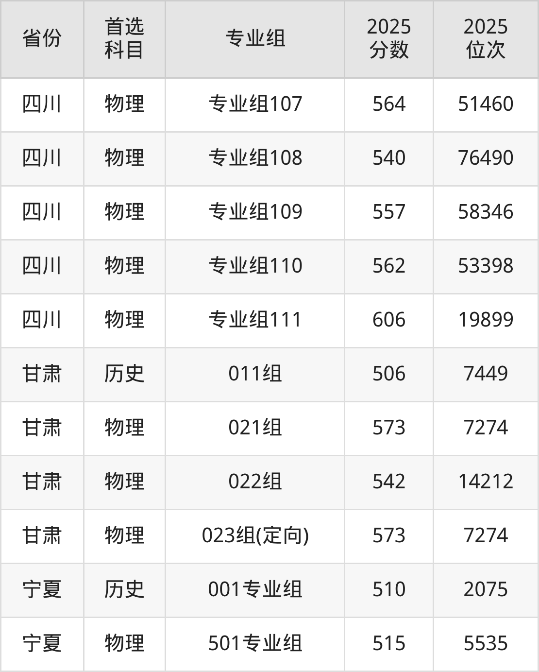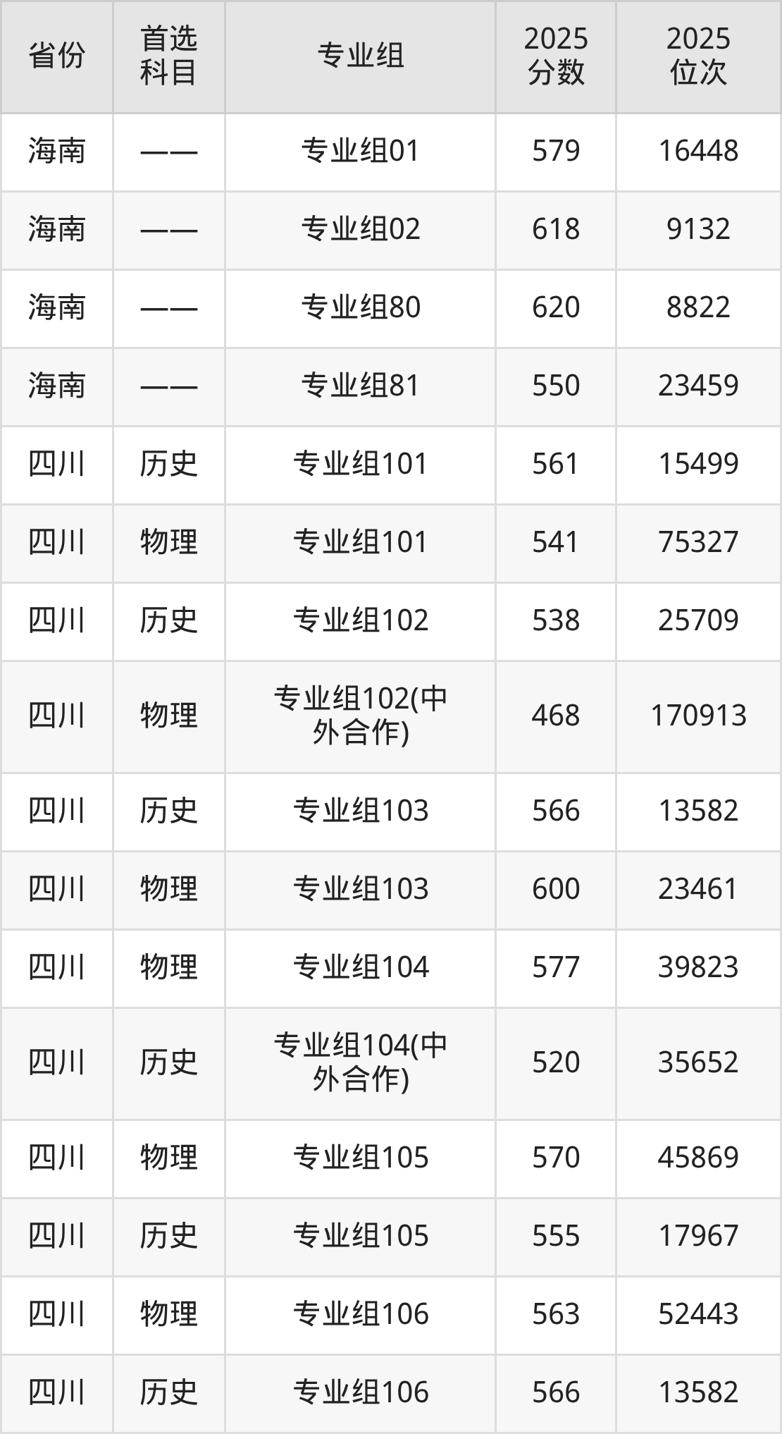 因为大部分地区目前只公布了院校(专业组)分数线,为了方便2026年考生参考,本文就整理出成都信息工程大学在全国各省不同科类的最低分: