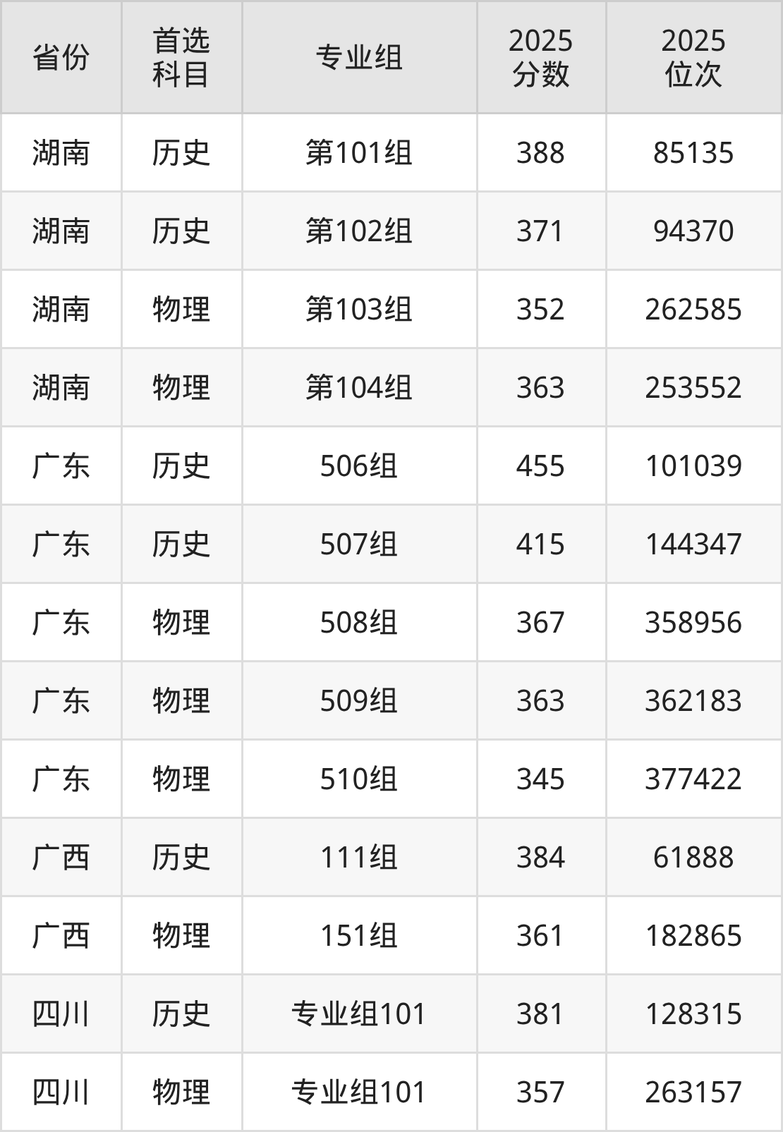 因为大部分地区目前只公布了院校(专业组)分数线,为了方便2026年考生参考,本文就整理出常德职业技术学院在全国各省不同科类的最低分: