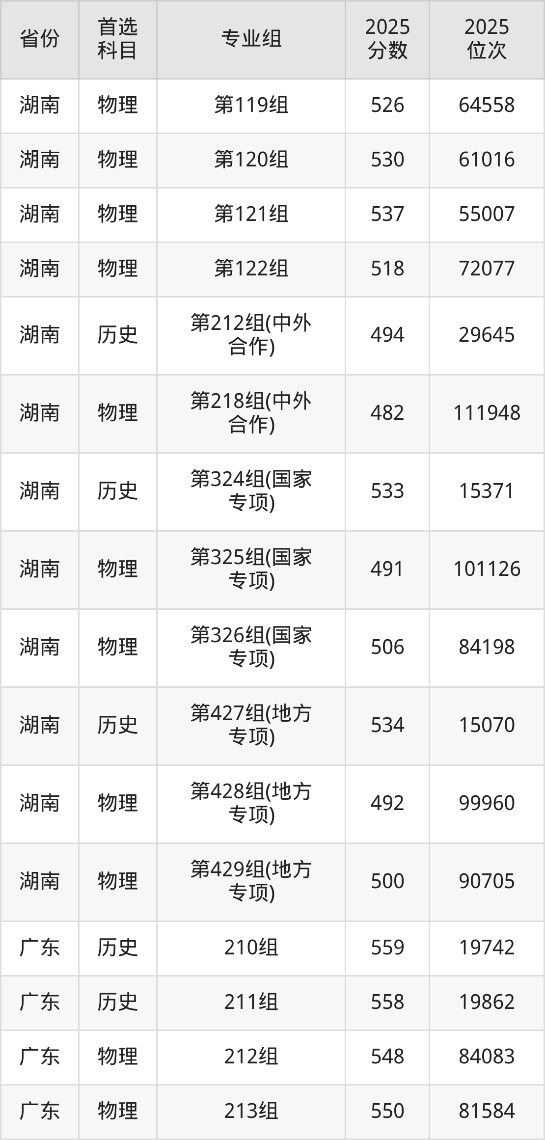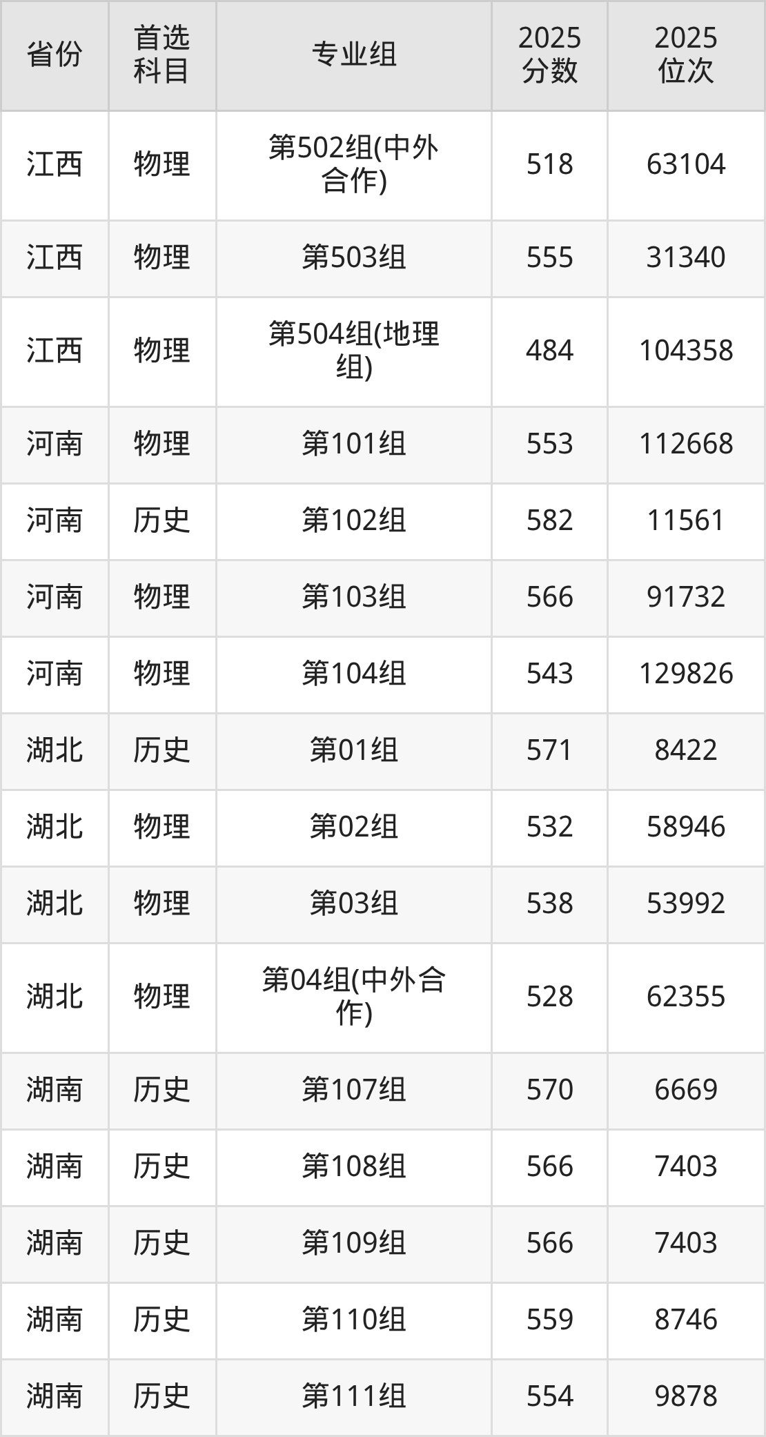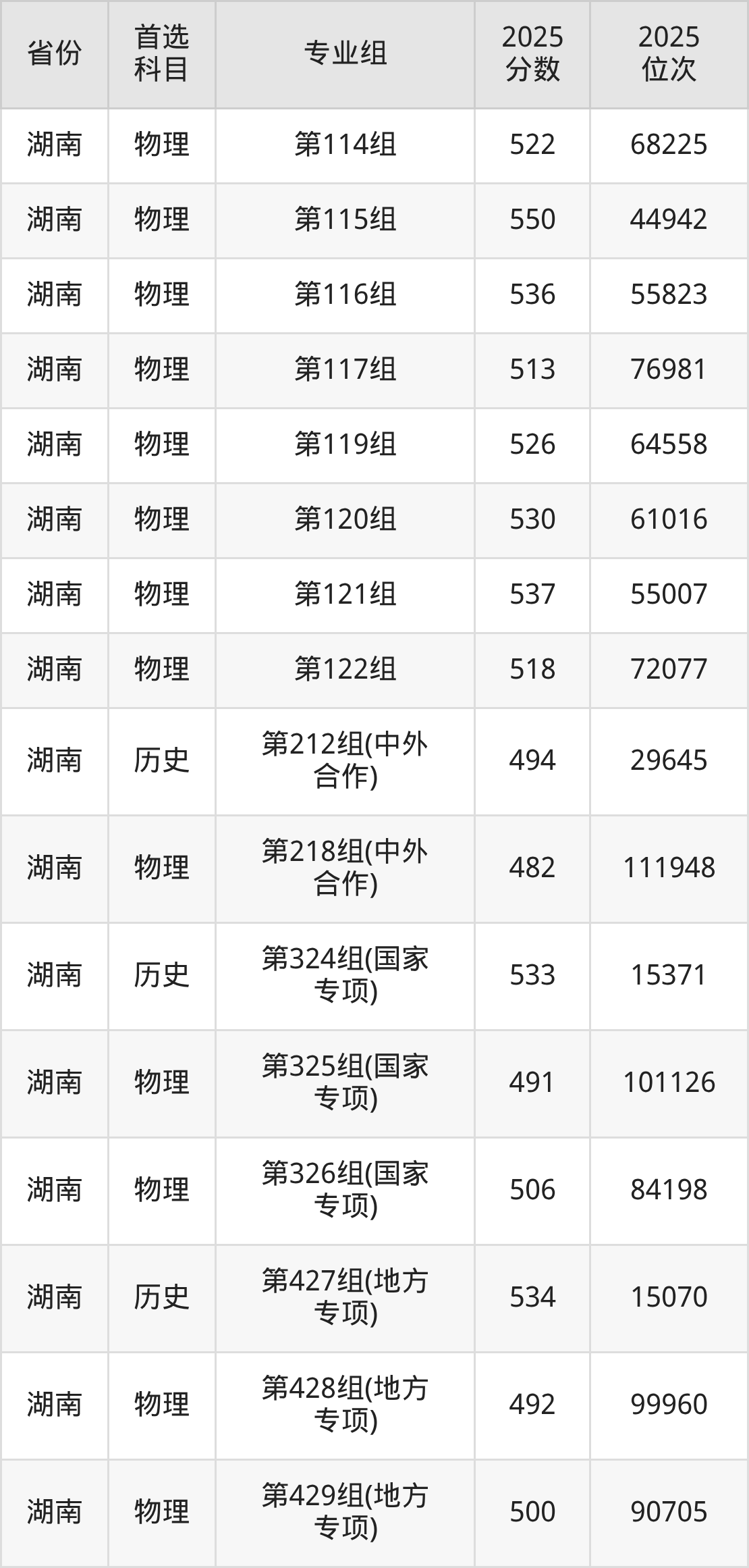 因为大部分地区目前只公布了院校(专业组)分数线,为了方便2026年考生参考,本文就整理出湖南工商大学在全国各省不同科类的最低分: