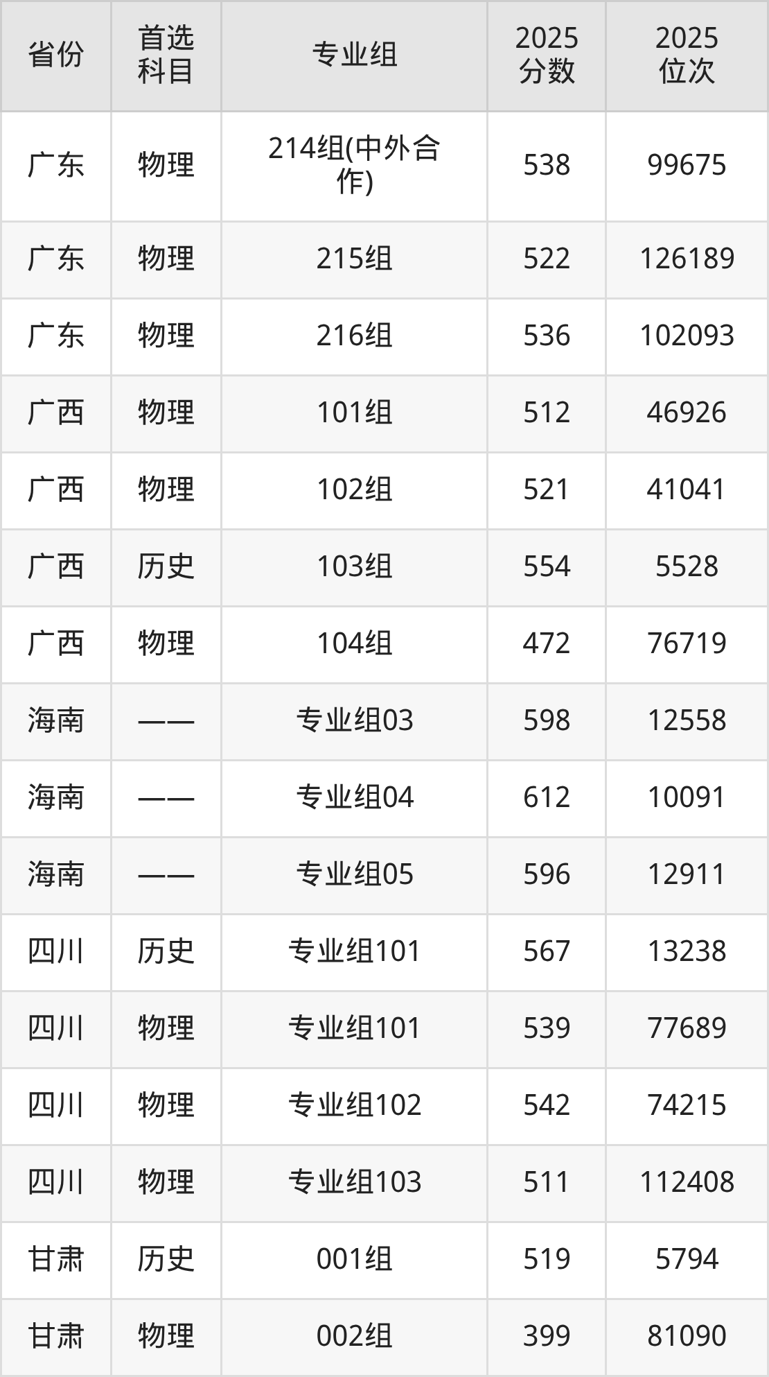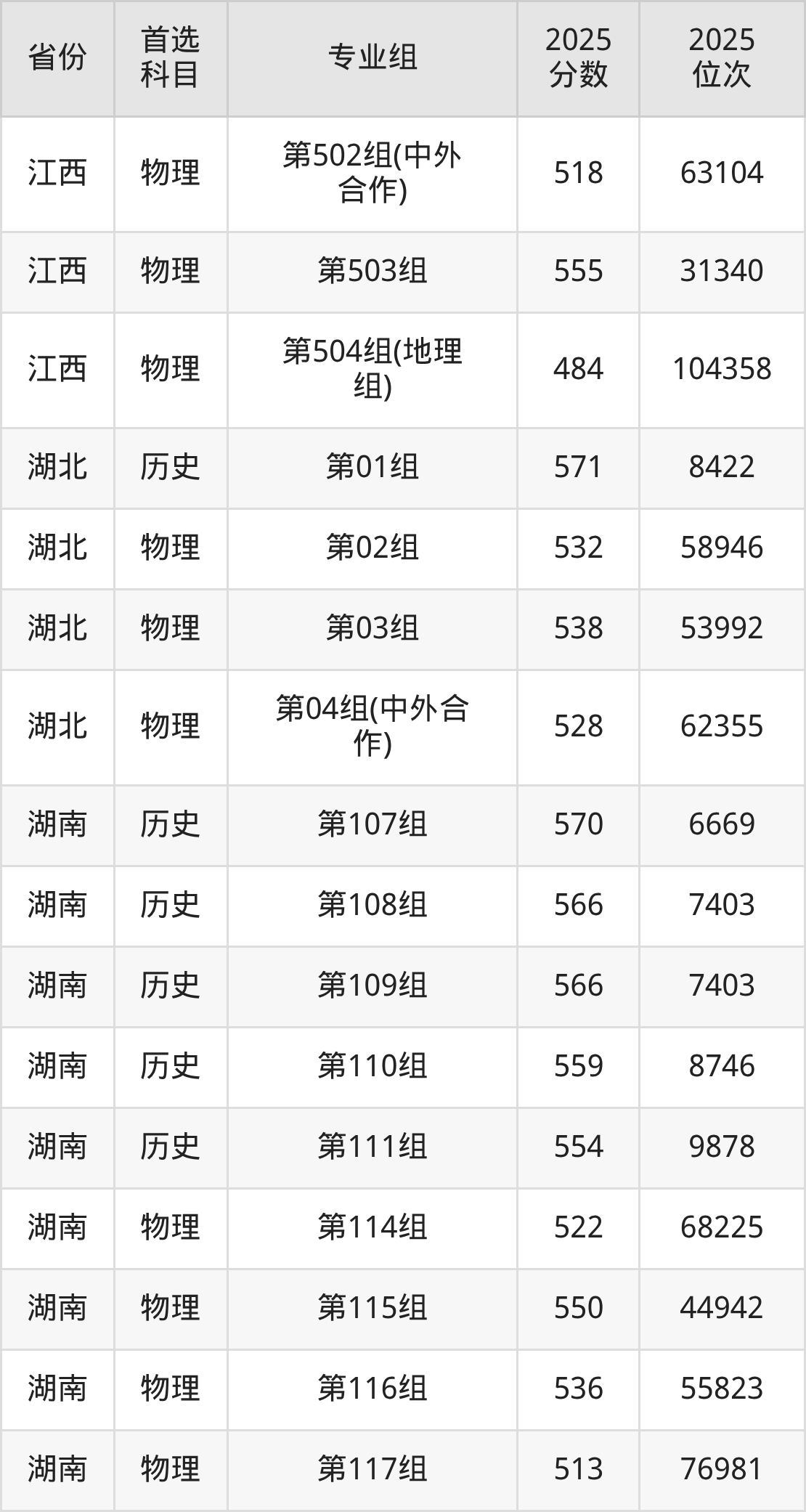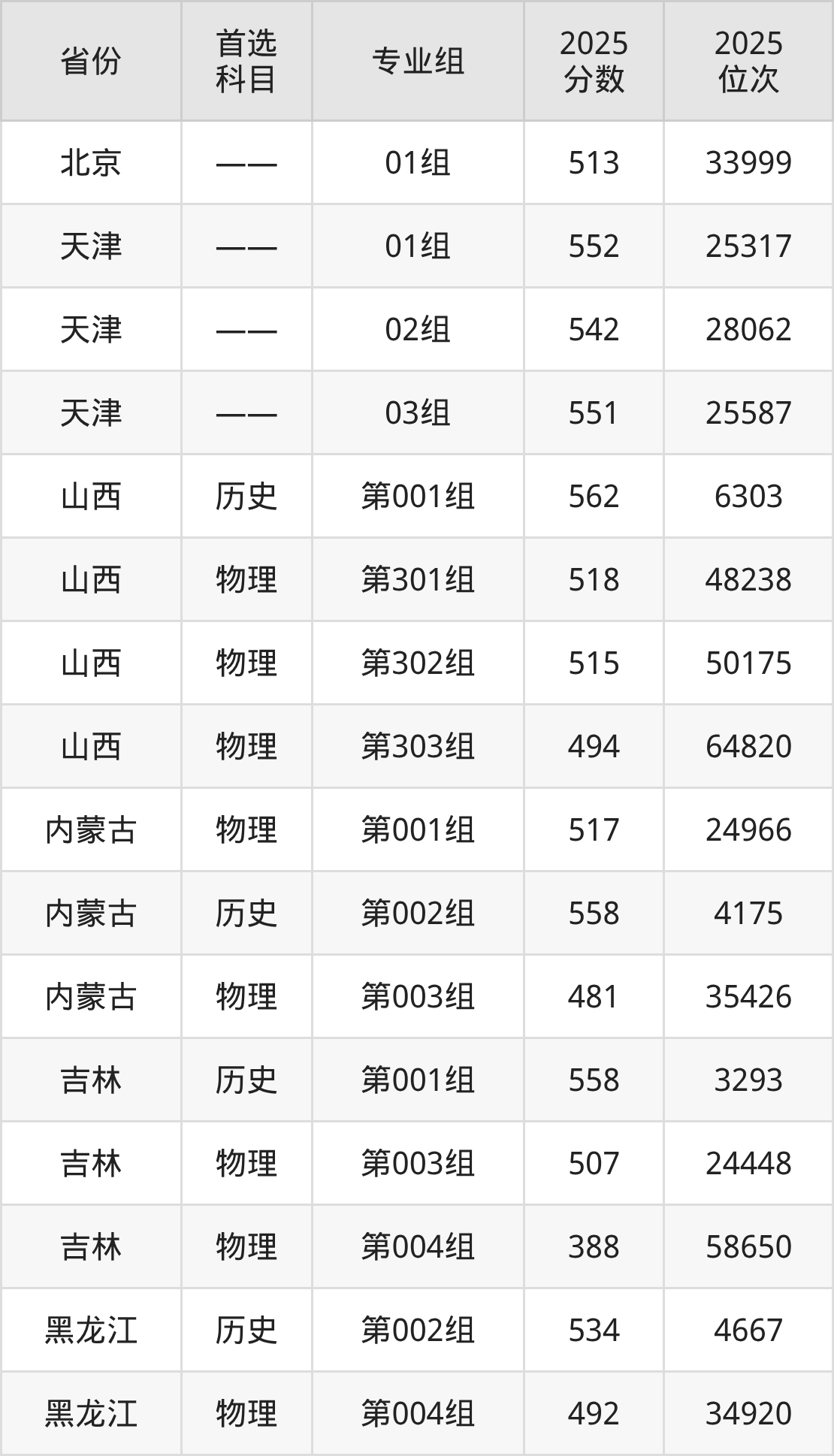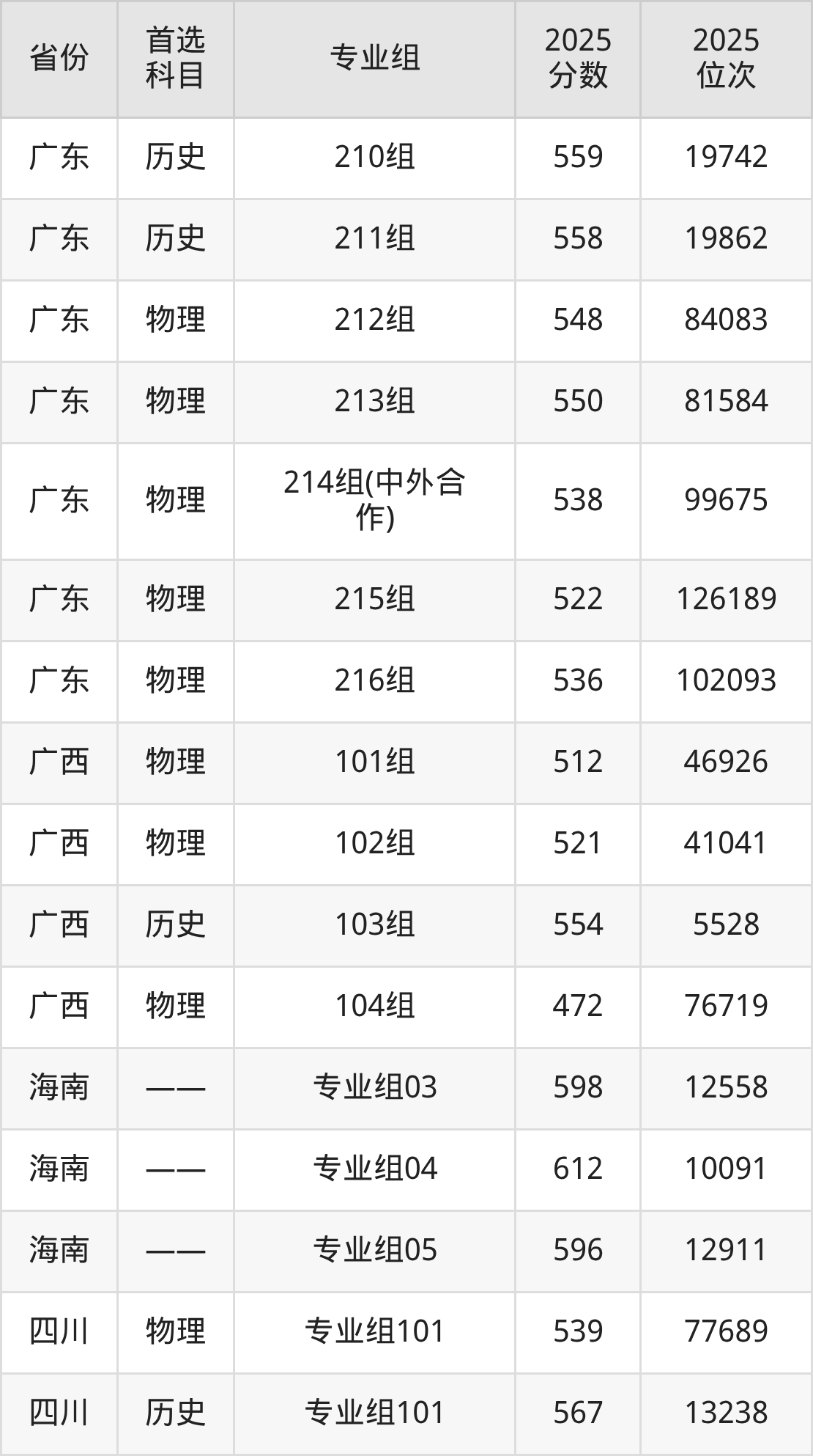 因为大部分地区目前只公布了院校(专业组)分数线,为了方便2026年考生参考,本文就整理出湖南工商大学在全国各省不同科类的最低分: