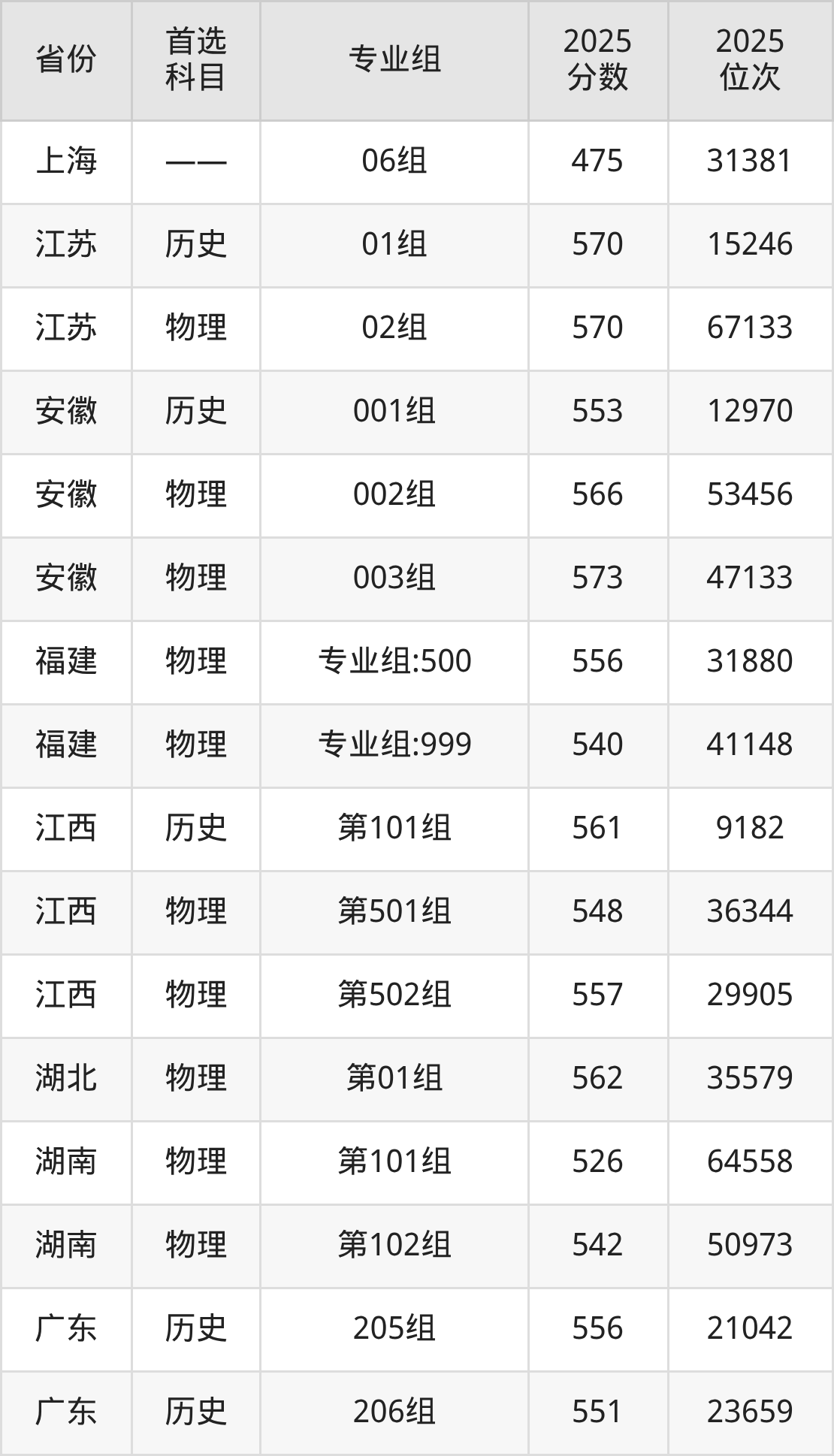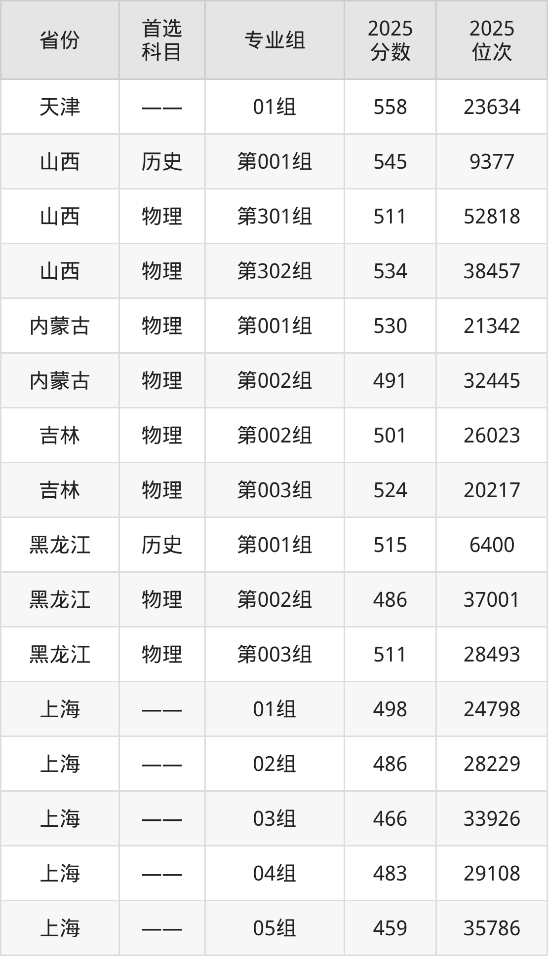 因为大部分地区目前只公布了院校(专业组)分数线,为了方便2026年考生参考,本文就整理出上海工程技术大学在全国各省不同科类的最低分: