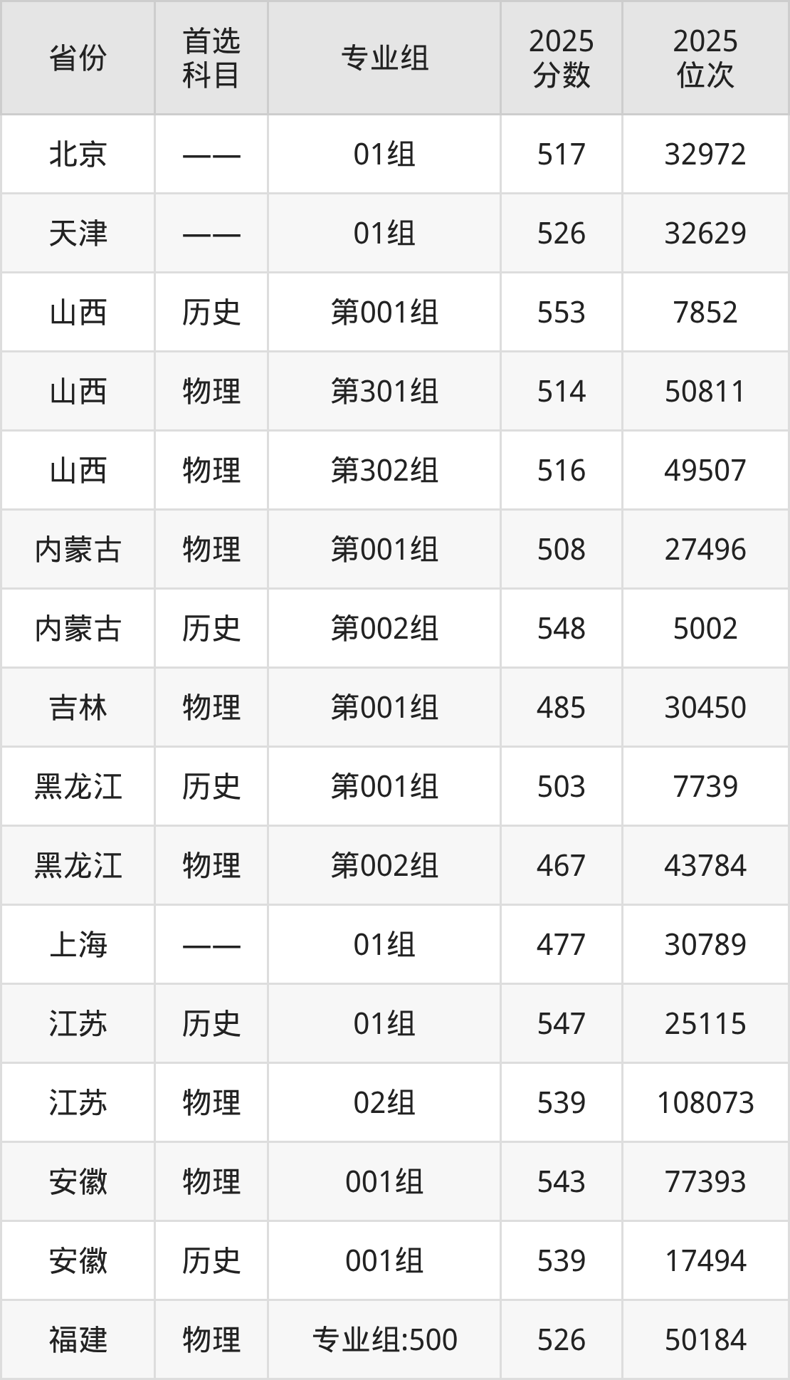 因为大部分地区目前只公布了院校(专业组)分数线,为了方便2026年考生参考,本文就整理出齐鲁工业大学在全国各省不同科类的最低分: