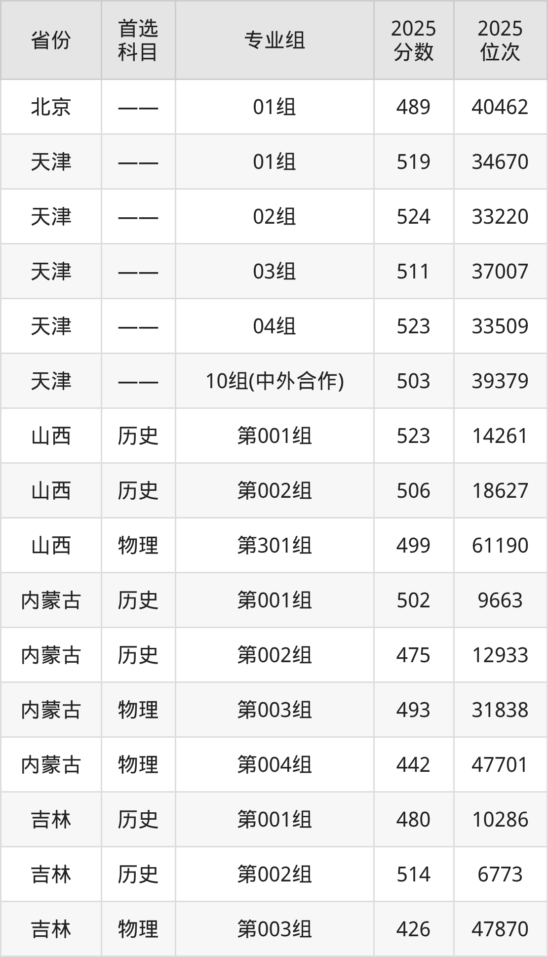 因为大部分地区目前只公布了院校(专业组)分数线,为了方便2026年考生参考,本文就整理出衡水学院在全国各省不同科类的最低分: