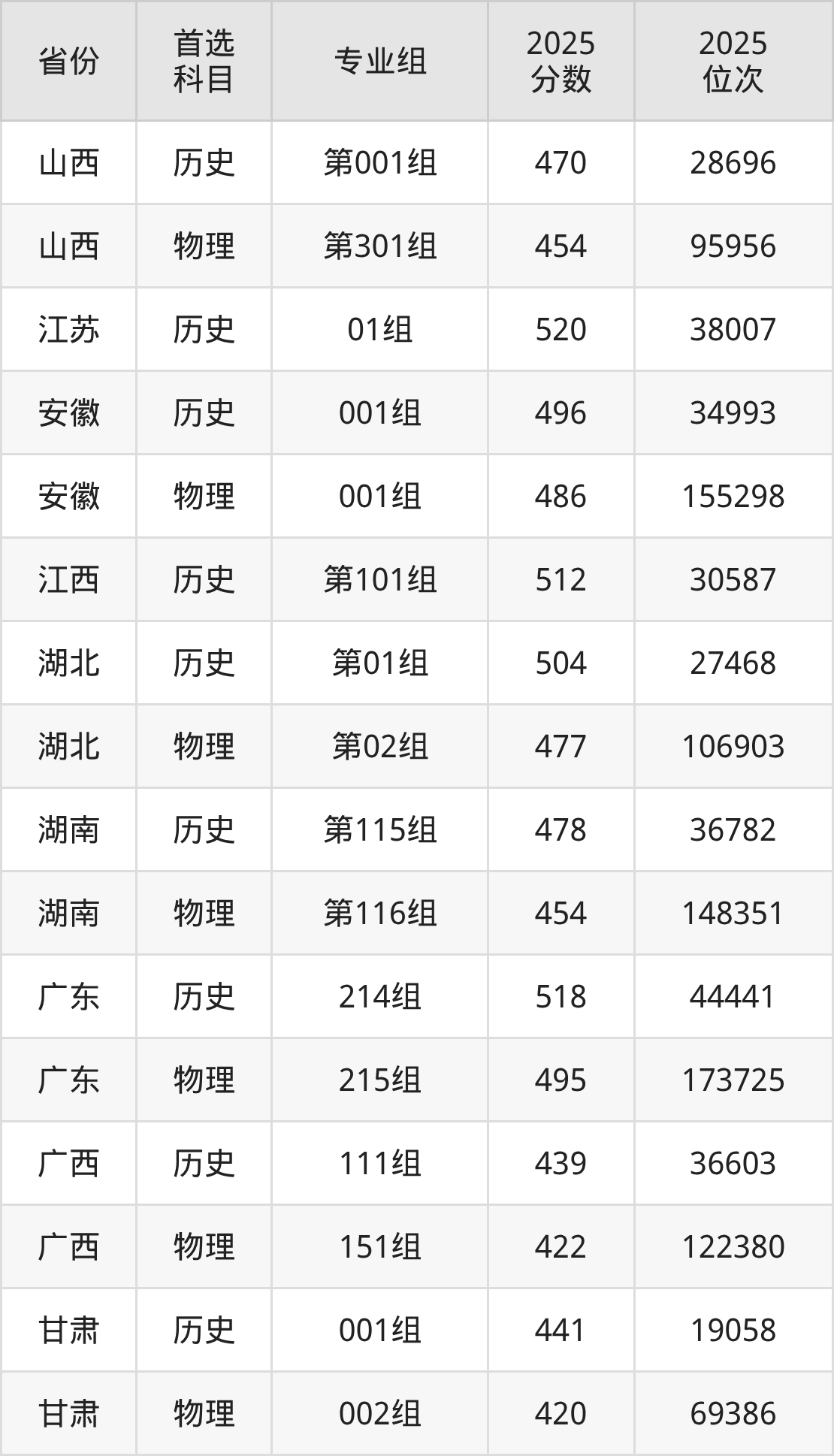 12.甘肃:历史类441分、19058位,物理类420分、69386位