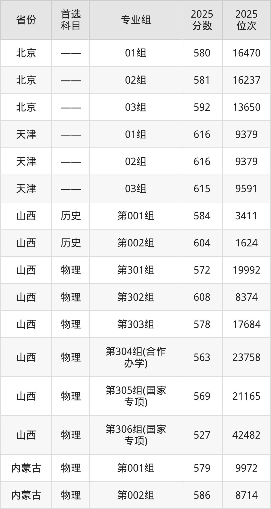 因为大部分地区目前只公布了院校(专业组)分数线,为了方便2026年考生参考,本文就整理出长安大学在全国各省不同科类的最低分: