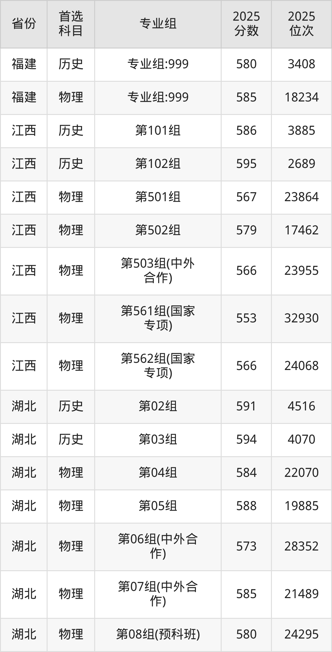 16.湖北:历史类591分、4516位,物理类563分、34890位