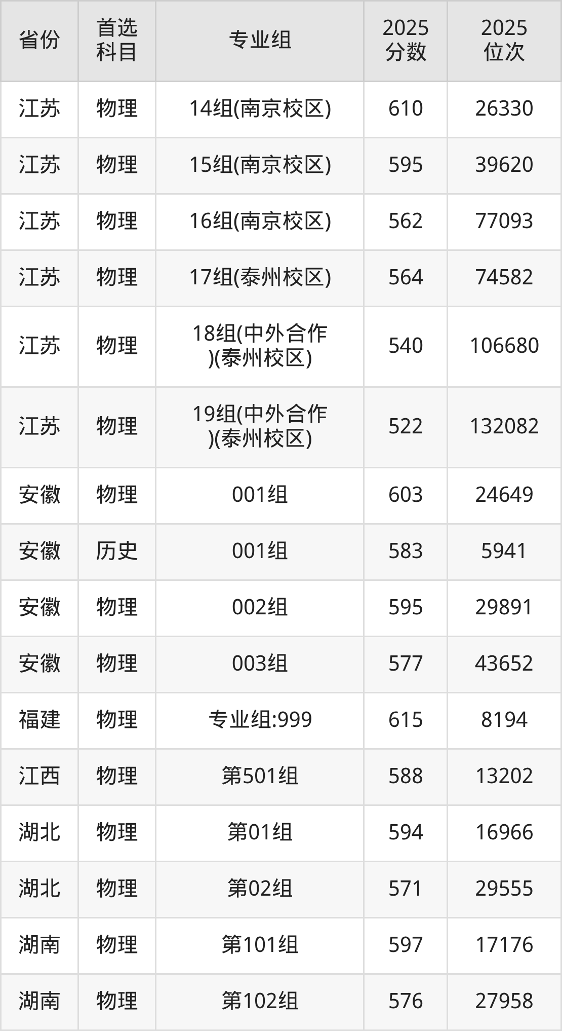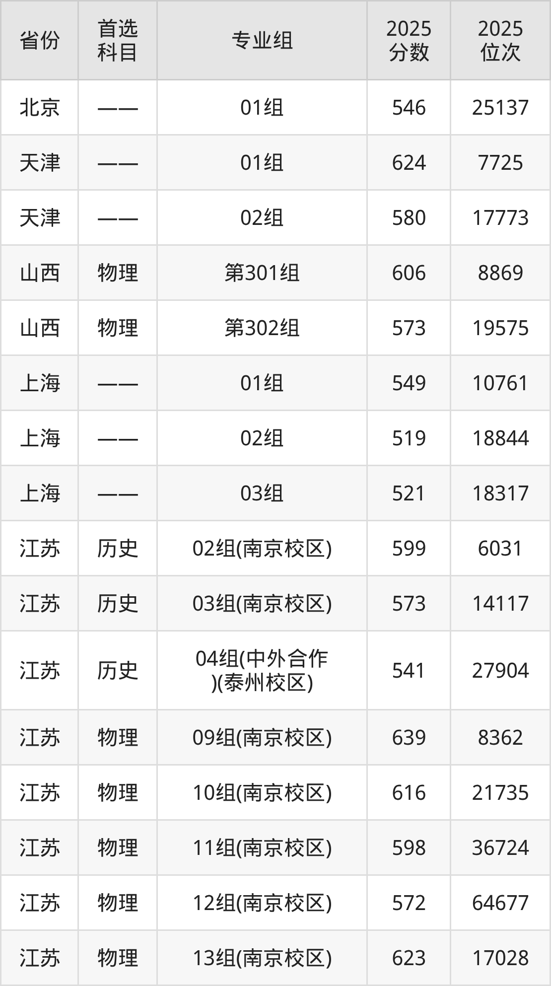 因为大部分地区目前只公布了院校(专业组)分数线,为了方便2026年考生参考,本文就整理出南京中医药大学在全国各省不同科类的最低分: