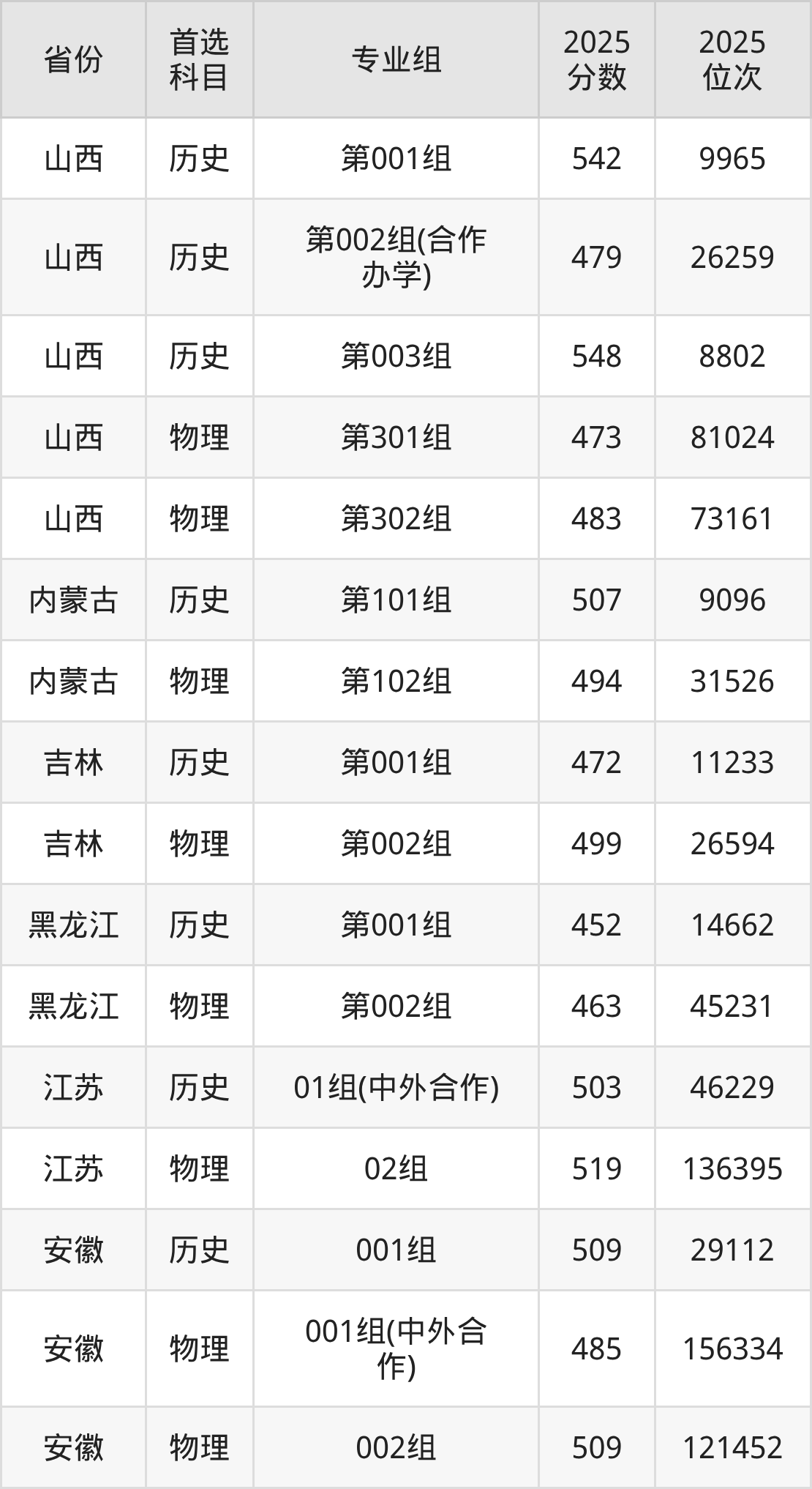 因为大部分地区目前只公布了院校(专业组)分数线,为了方便2026年考生参考,本文就整理出咸阳师范学院在全国各省不同科类的最低分: