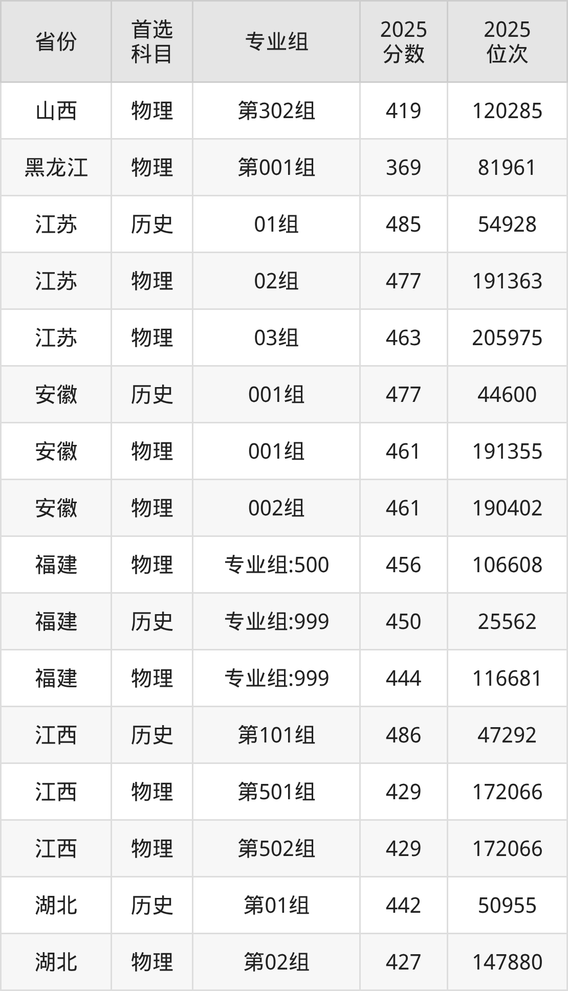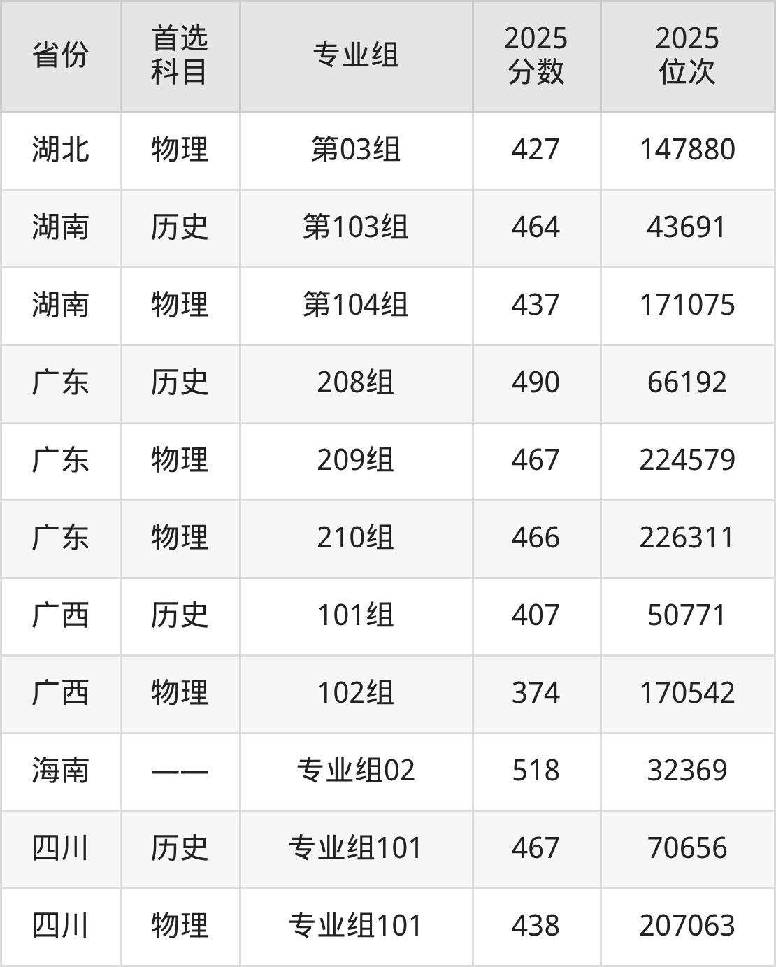 因为大部分地区目前只公布了院校(专业组)分数线,为了方便2026年考生参考,本文就整理出江西服装学院在全国各省不同科类的最低分: