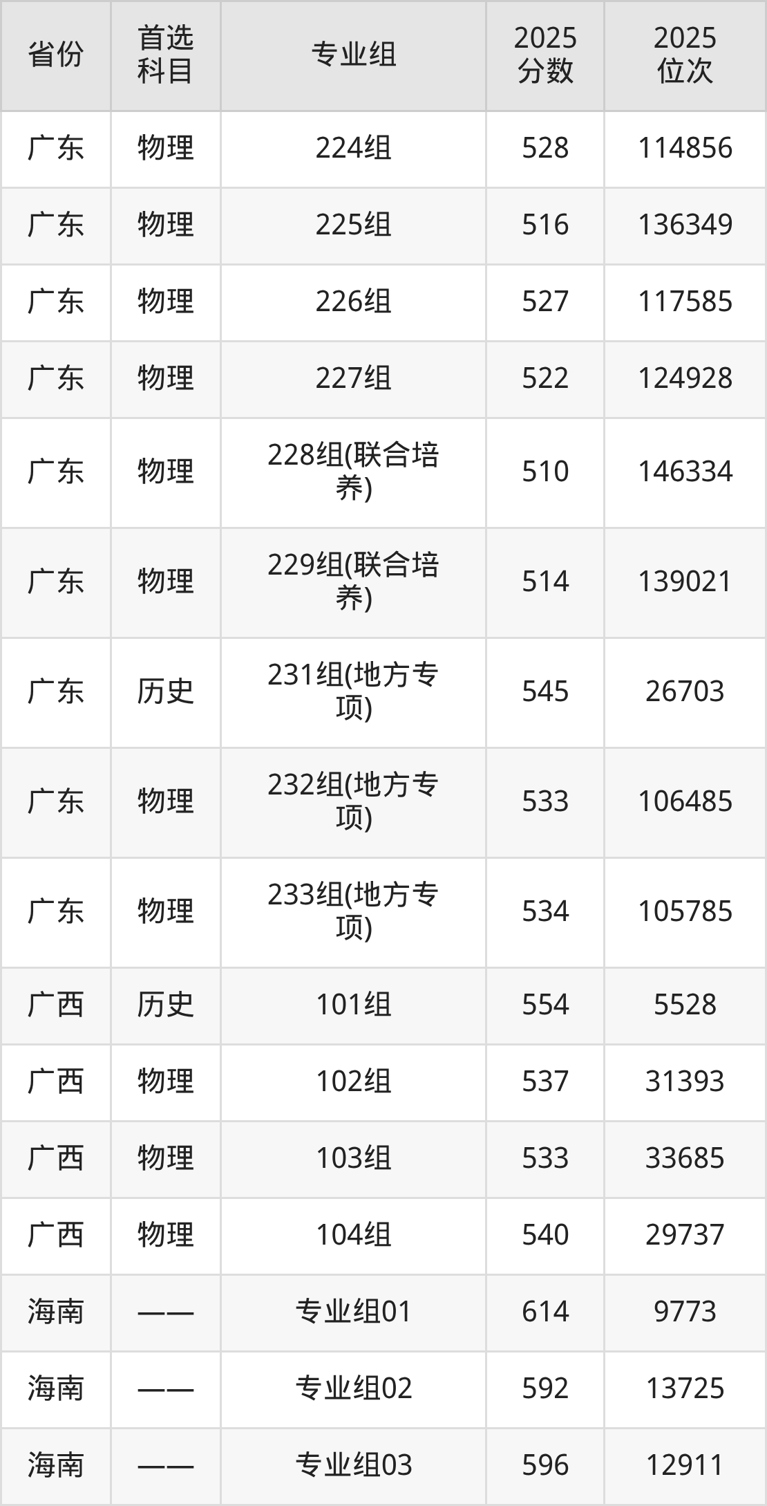 因为大部分地区目前只公布了院校(专业组)分数线,为了方便2026年考生参考,本文就整理出广东金融学院在全国各省不同科类的最低分: