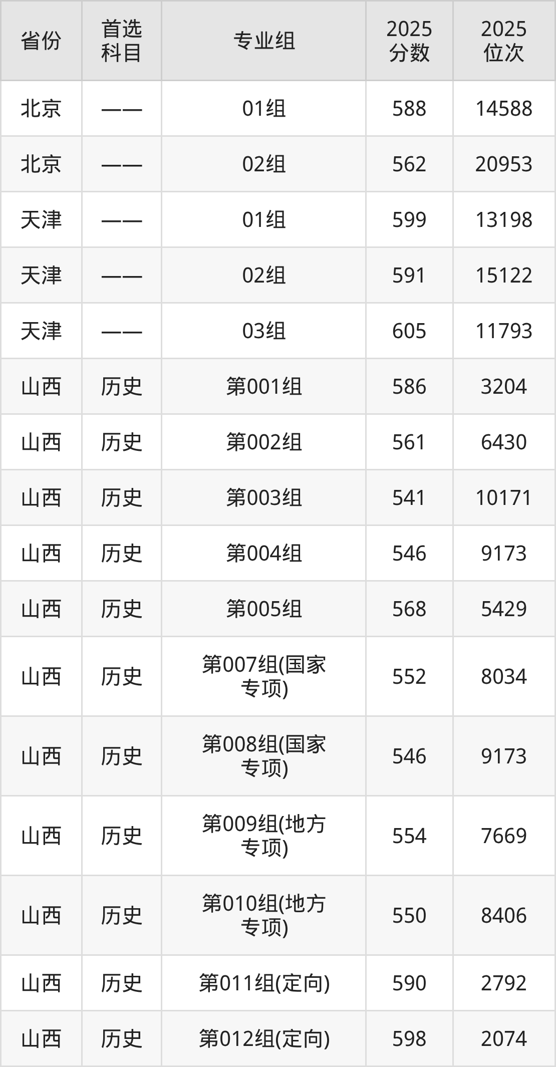 因为大部分地区目前只公布了院校(专业组)分数线,为了方便2026年考生参考,本文就整理出山西大学在全国各省不同科类的最低分: