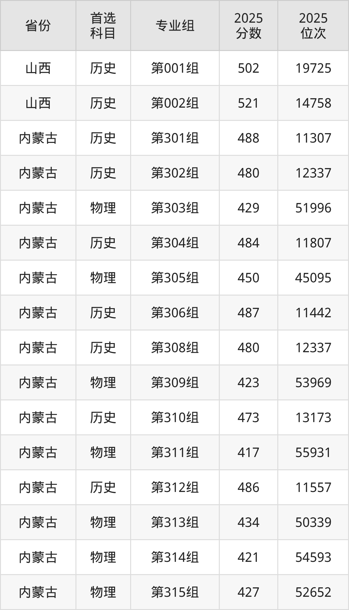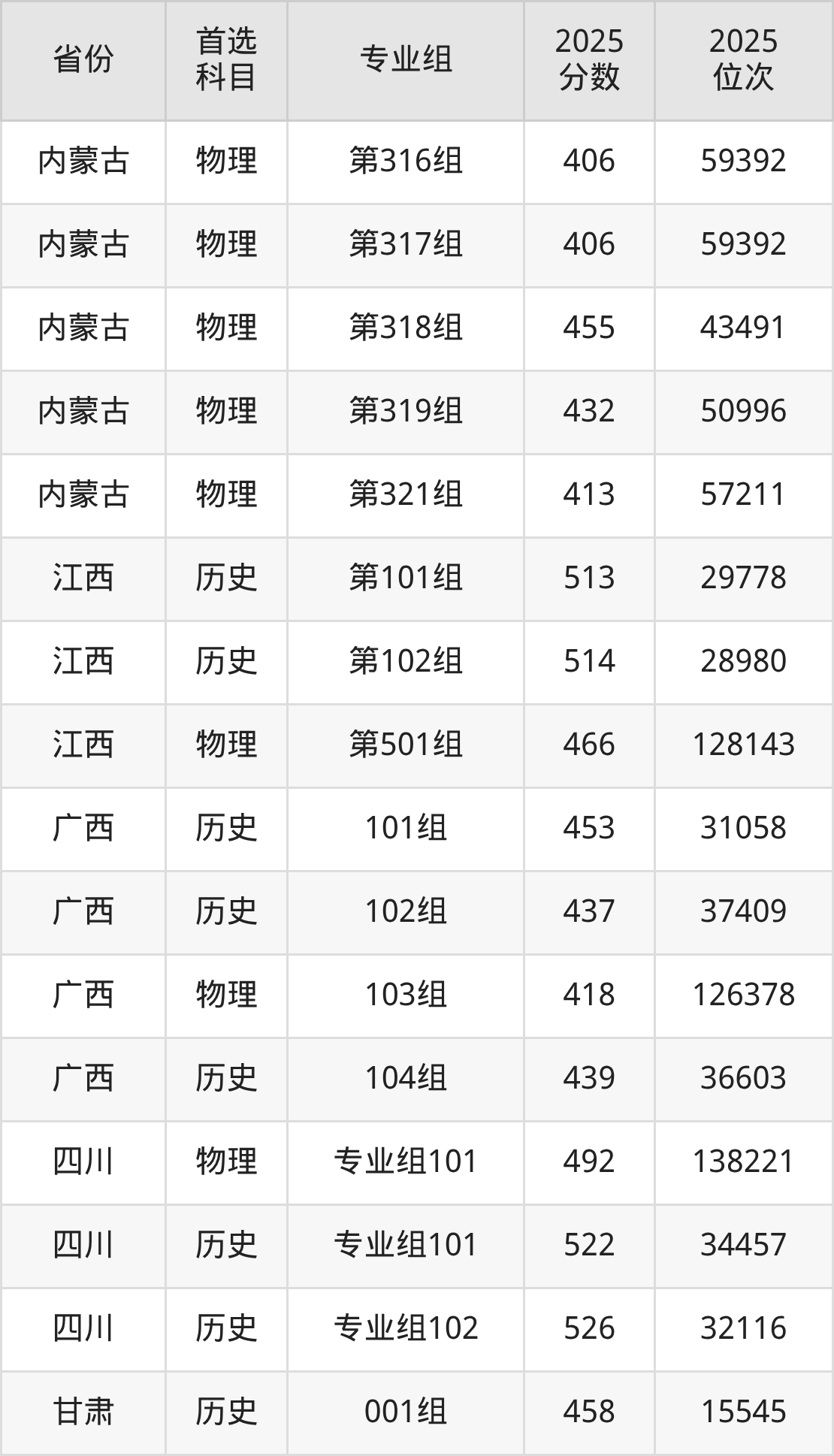 因为大部分地区目前只公布了院校(专业组)分数线,为了方便2026年考生参考,本文就整理出集宁师范学院在全国各省不同科类的最低分:
