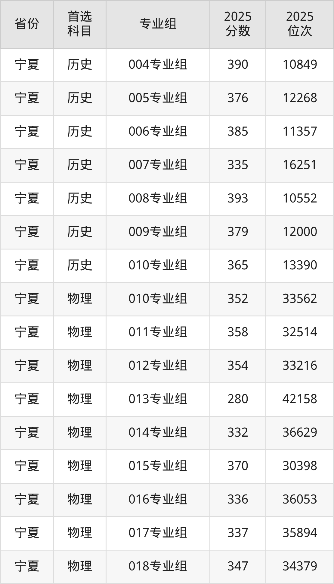 25.宁夏:历史类335分、16251位,物理类280分、42158位