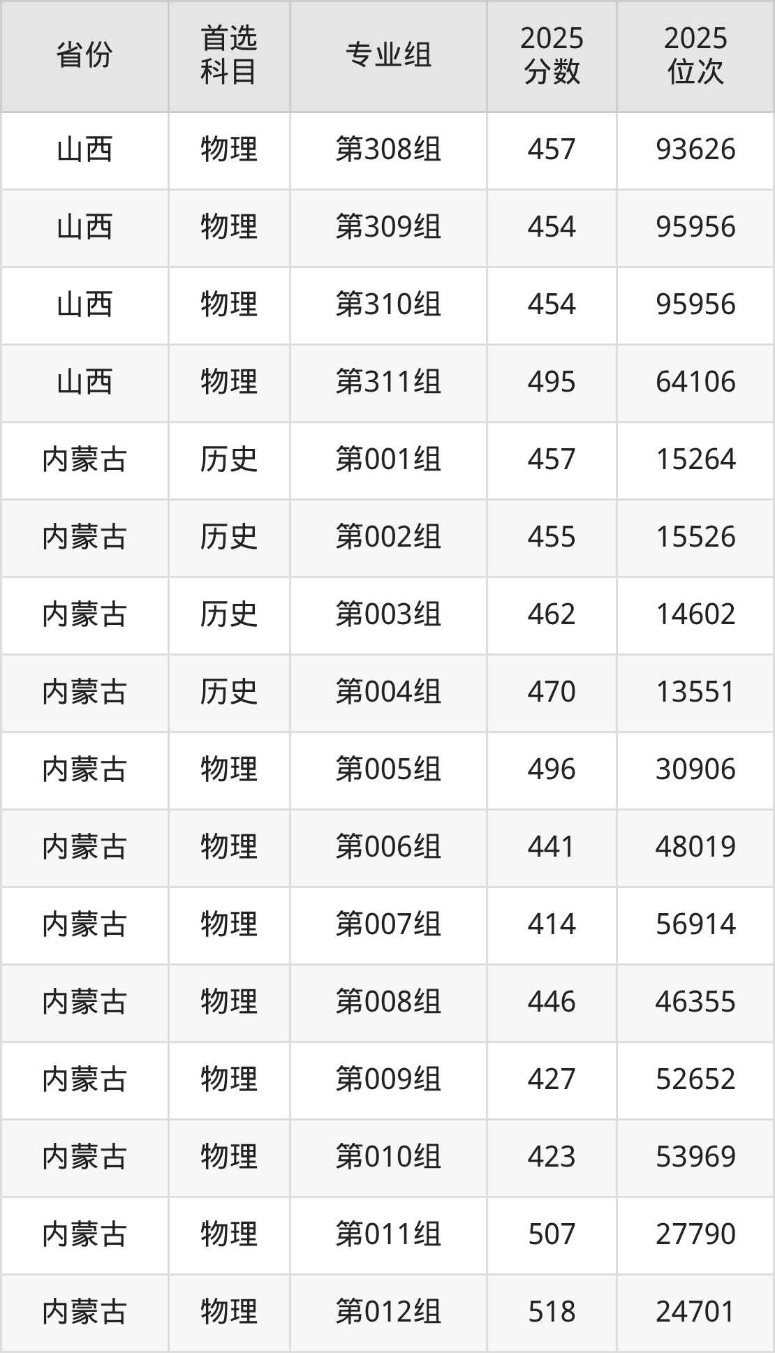5.内蒙古:物理类403分、60309位,历史类455分、15526位