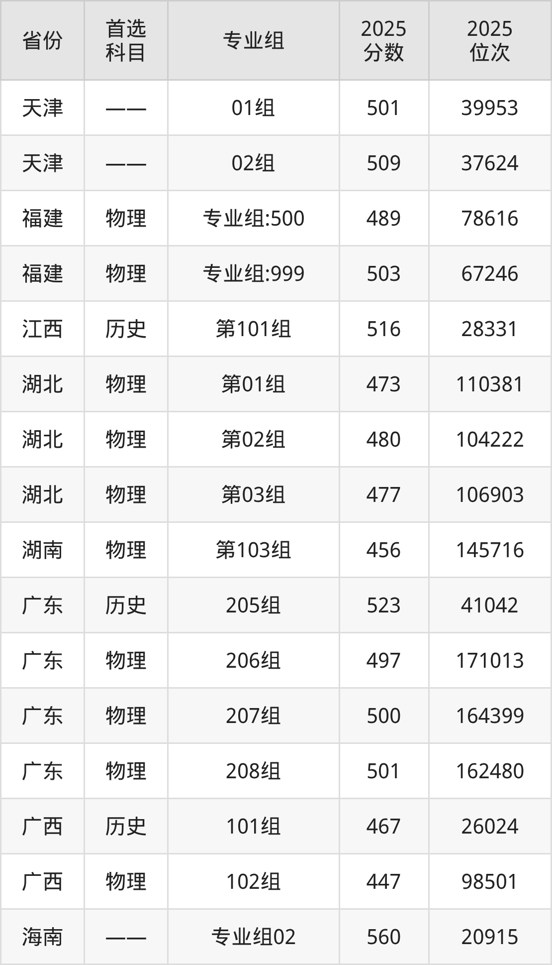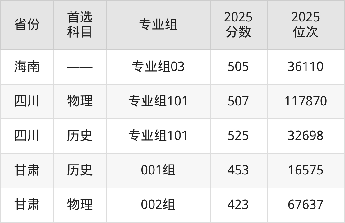 因为大部分地区目前只公布了院校(专业组)分数线,为了方便2026年考生参考,本文就整理出凯里学院在全国各省不同科类的最低分: