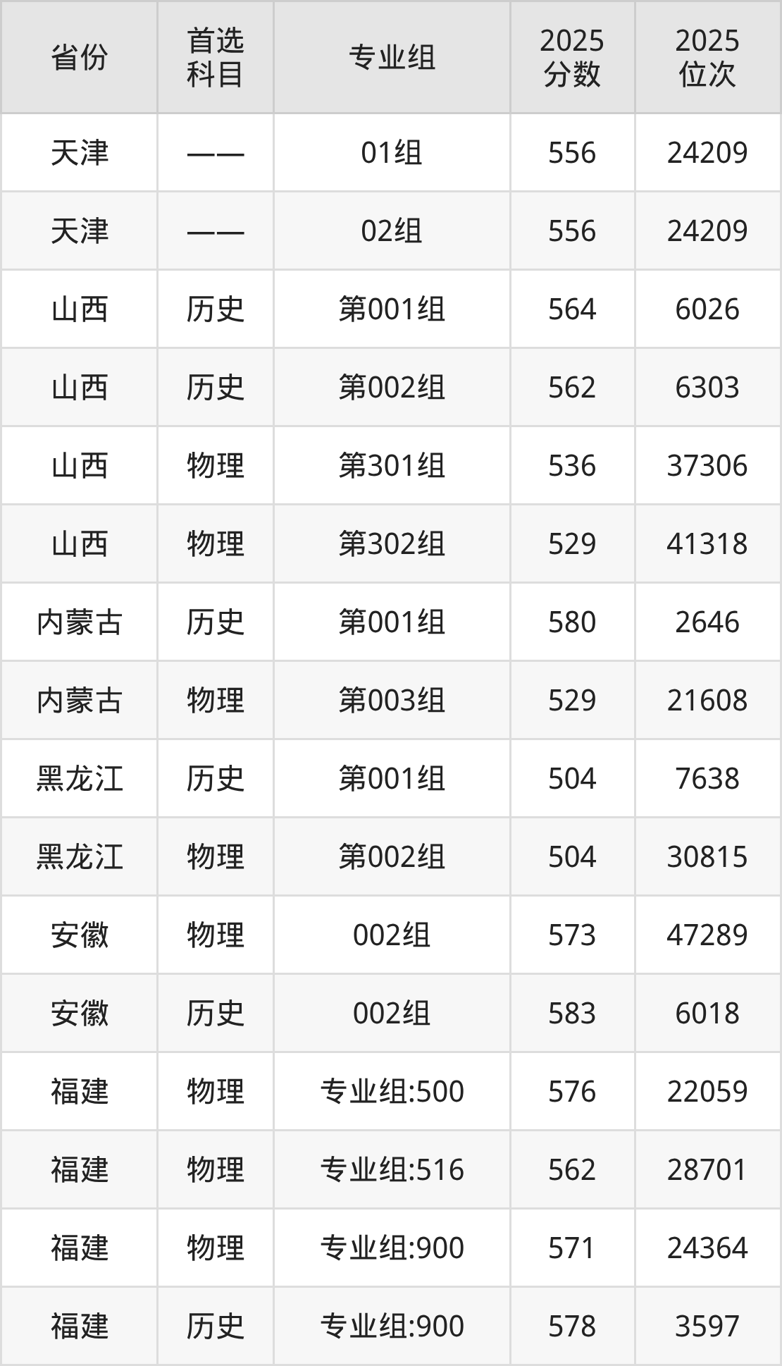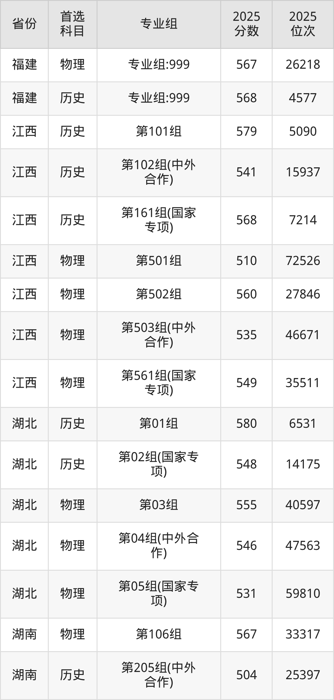 因为大部分地区目前只公布了院校(专业组)分数线,为了方便2026年考生参考,本文就整理出福建师范大学在全国各省不同科类的最低分: