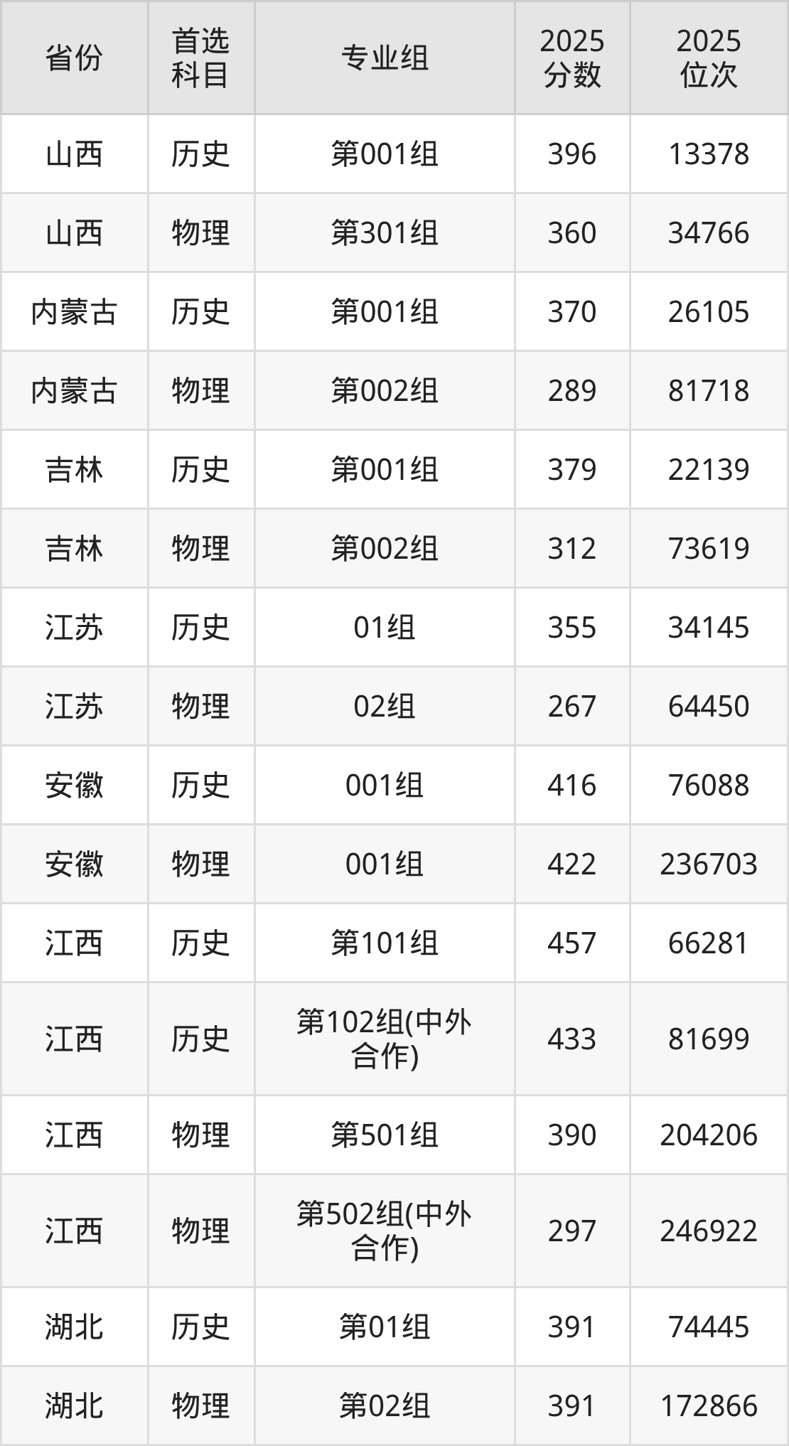 因为大部分地区目前只公布了院校(专业组)分数线,为了方便2026年考生参考,本文就整理出江西交通职业技术学院在全国各省不同科类的最低分: