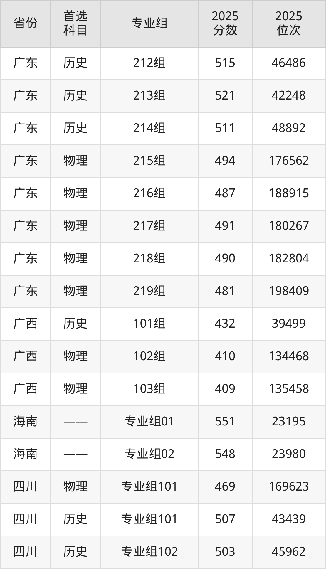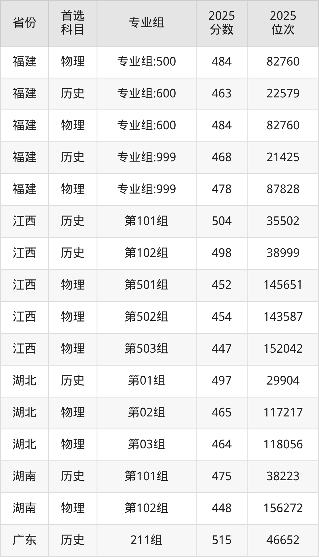 因为大部分地区目前只公布了院校(专业组)分数线,为了方便2026年考生参考,本文就整理出江西农业大学南昌商学院在全国各省不同科类的最低分: