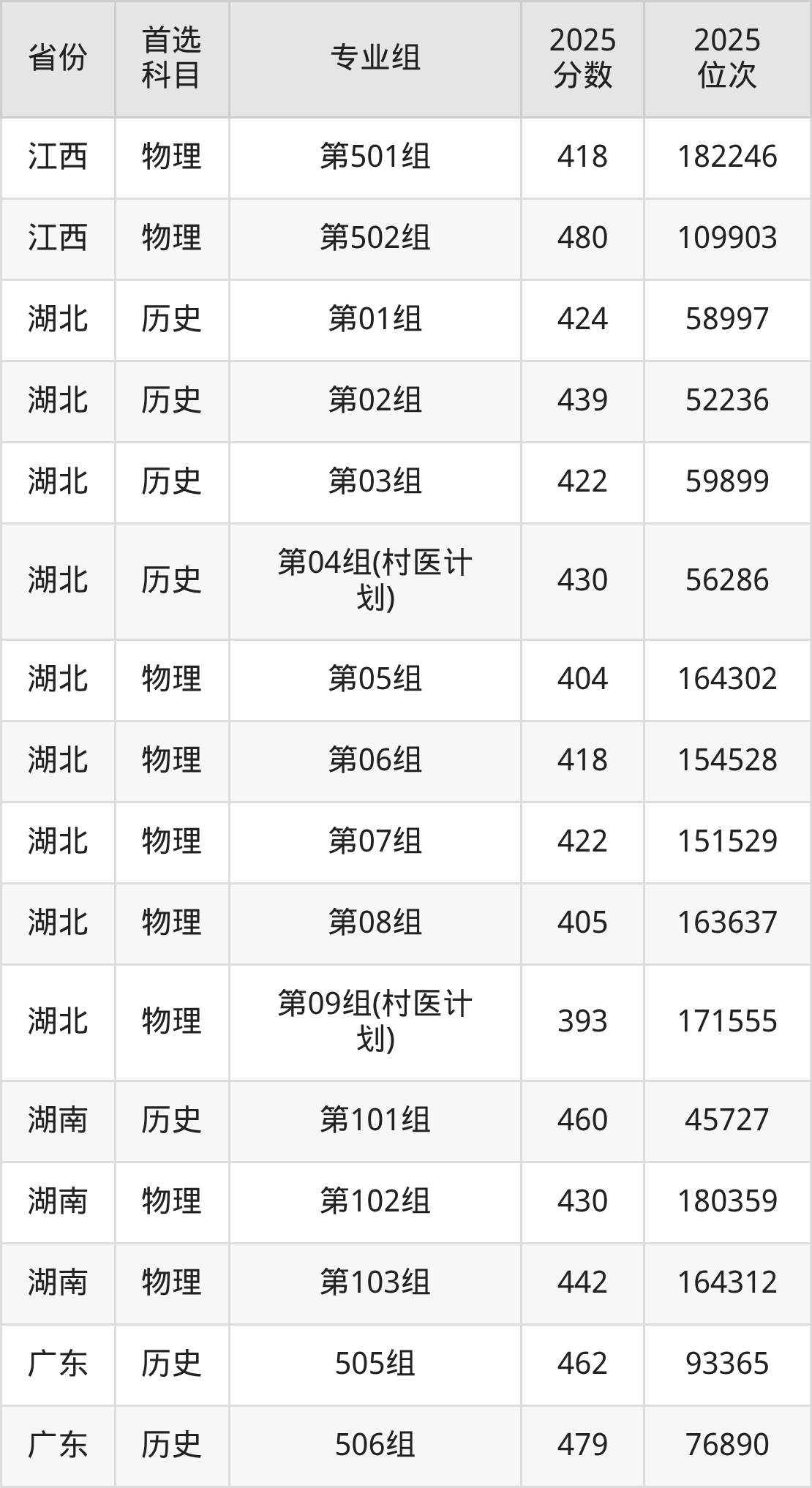 因为大部分地区目前只公布了院校(专业组)分数线,为了方便2026年考生参考,本文就整理出湖北中医药高等专科学校在全国各省不同科类的最低分: