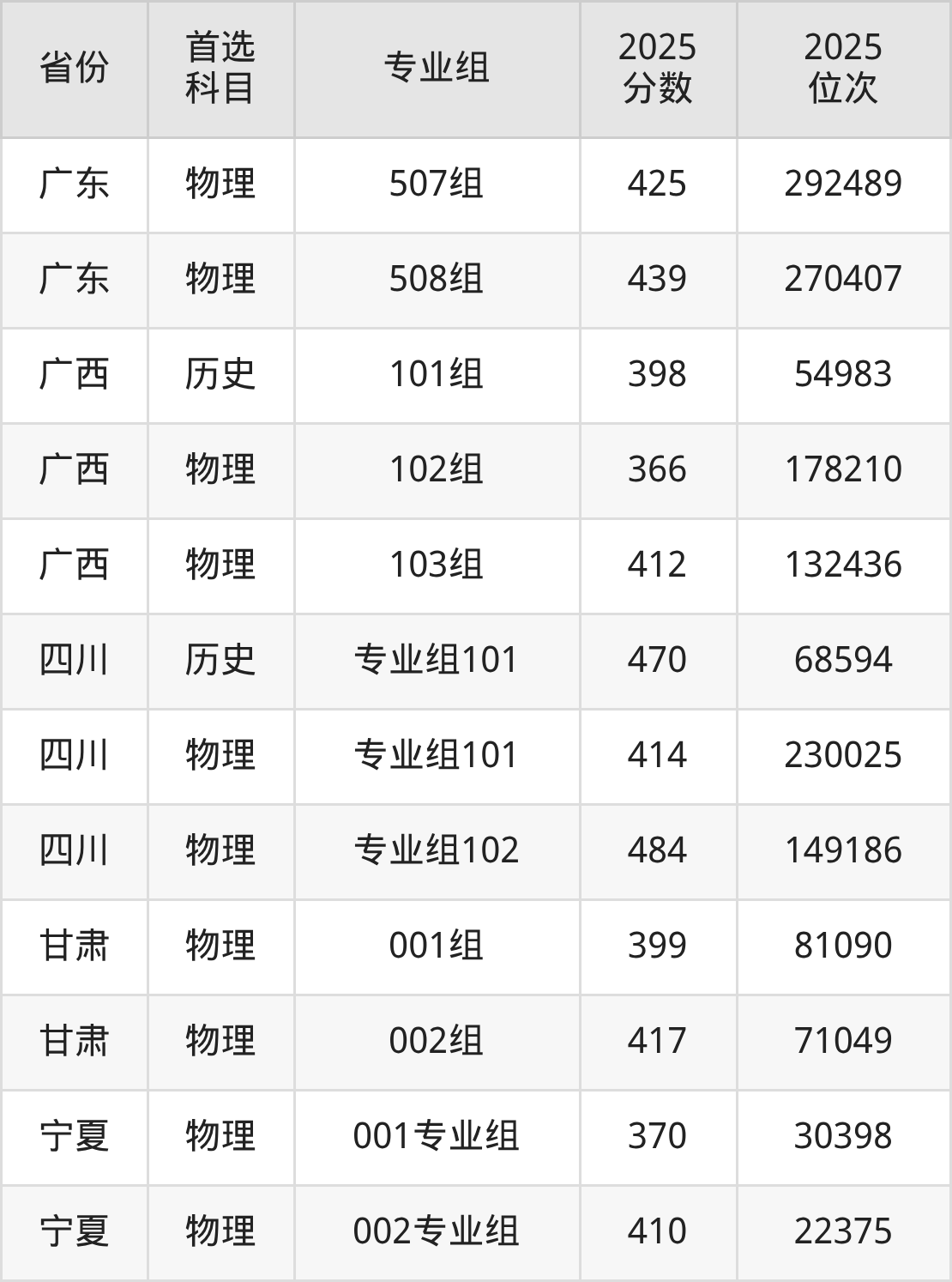 12.广东:历史类462分、93365位,物理类425分、292489位