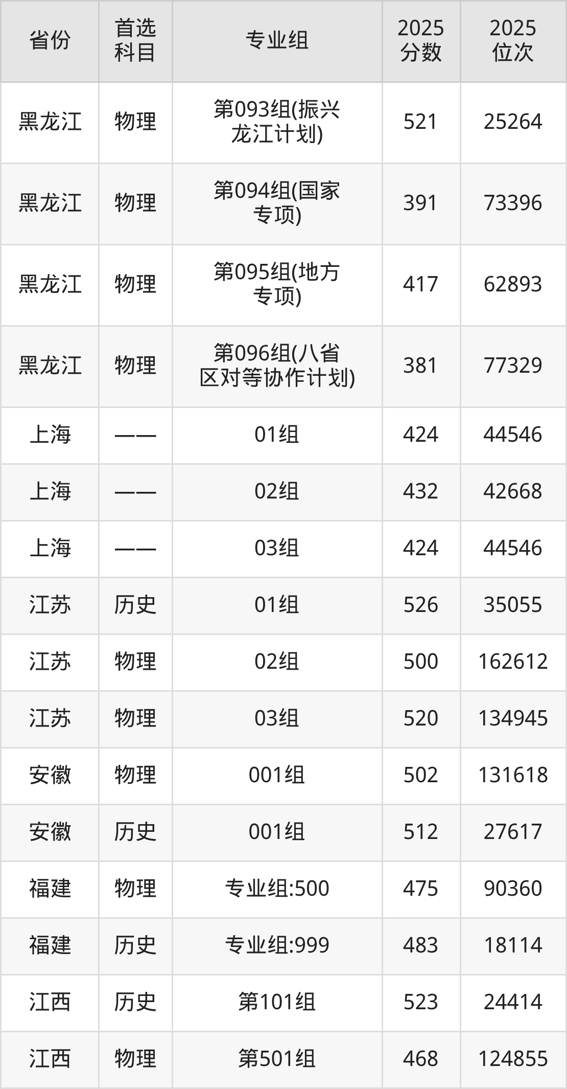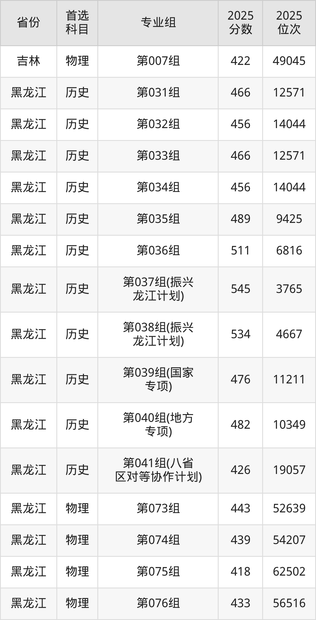 因为大部分地区目前只公布了院校(专业组)分数线,为了方便2026年考生参考,本文就整理出齐齐哈尔大学在全国各省不同科类的最低分: