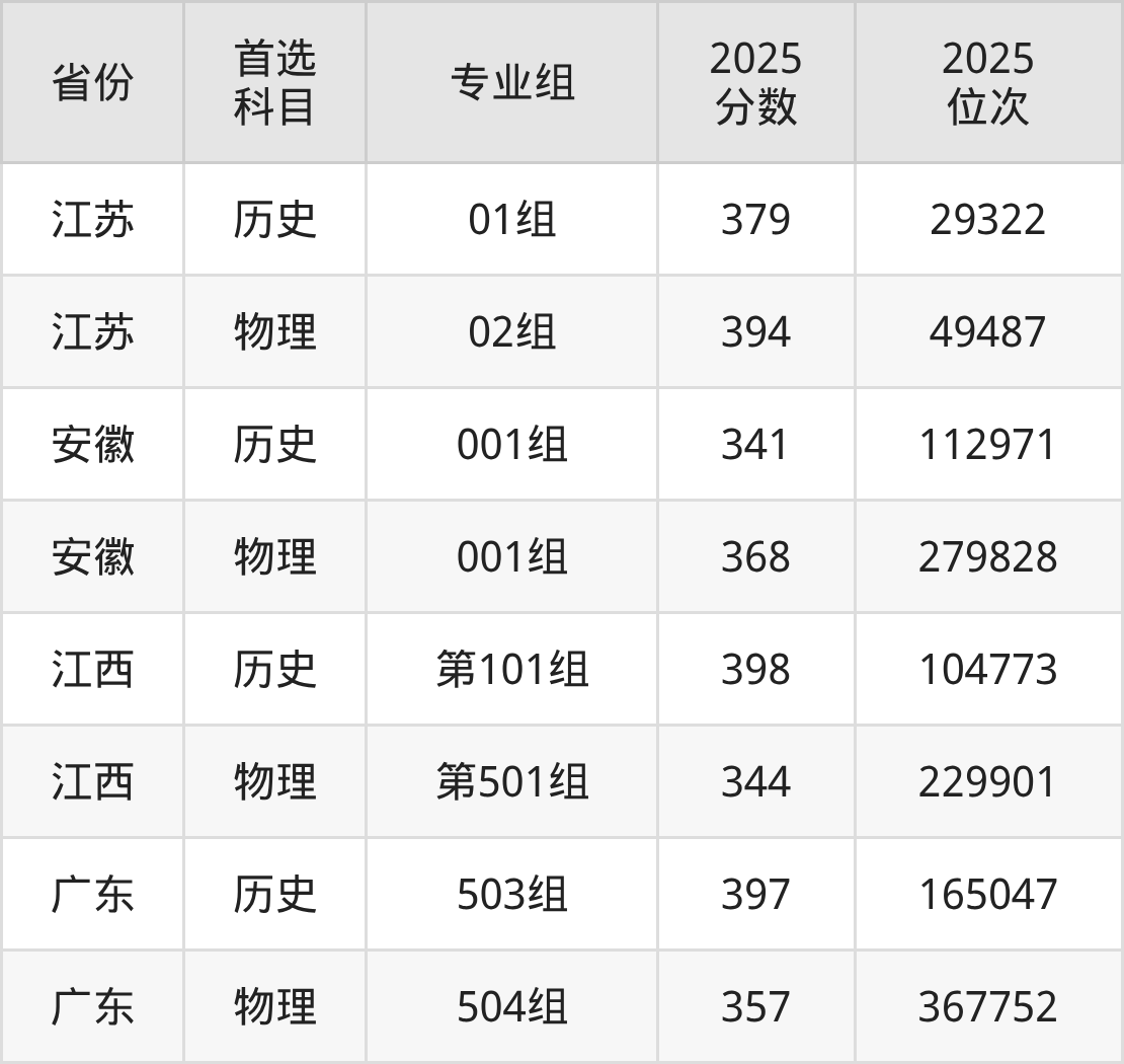 因为大部分地区目前只公布了院校(专业组)分数线,为了方便2026年考生参考,本文就整理出安徽冶金科技职业学院在全国各省不同科类的最低分: