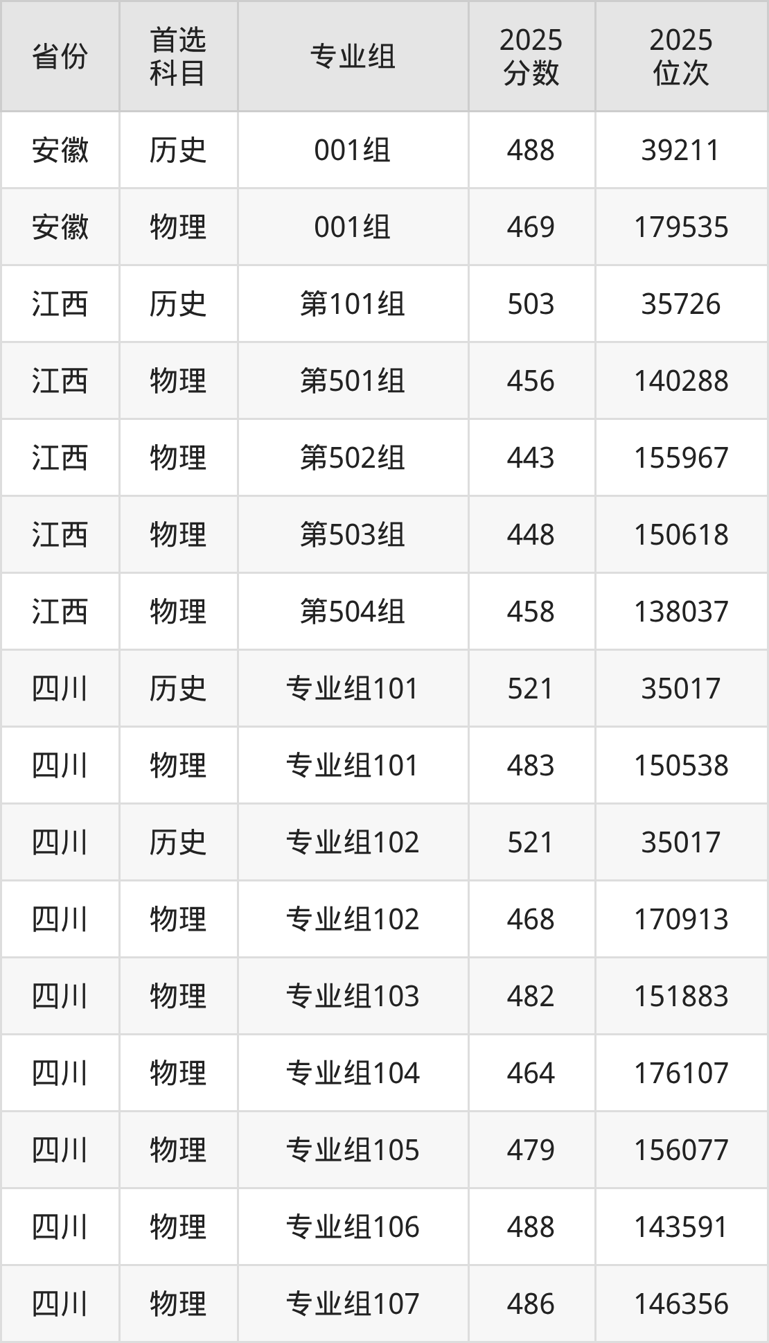 杭州职业技术大学在全国各省分专业组录取分数线: