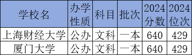 文科640分能上的大学有上海财经大学、厦门大学。