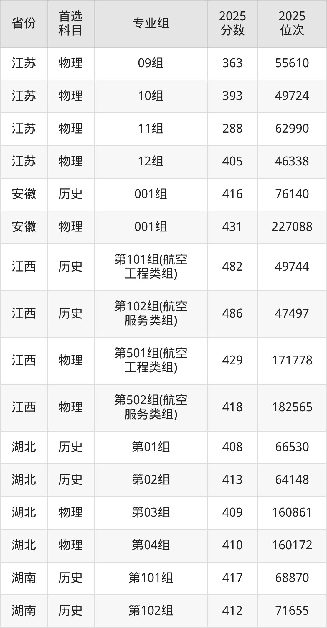 因为大部分地区目前只公布了院校(专业组)分数线,为了方便2026年考生参考,本文就整理出江苏航空职业技术学院在全国各省不同科类的最低分:
