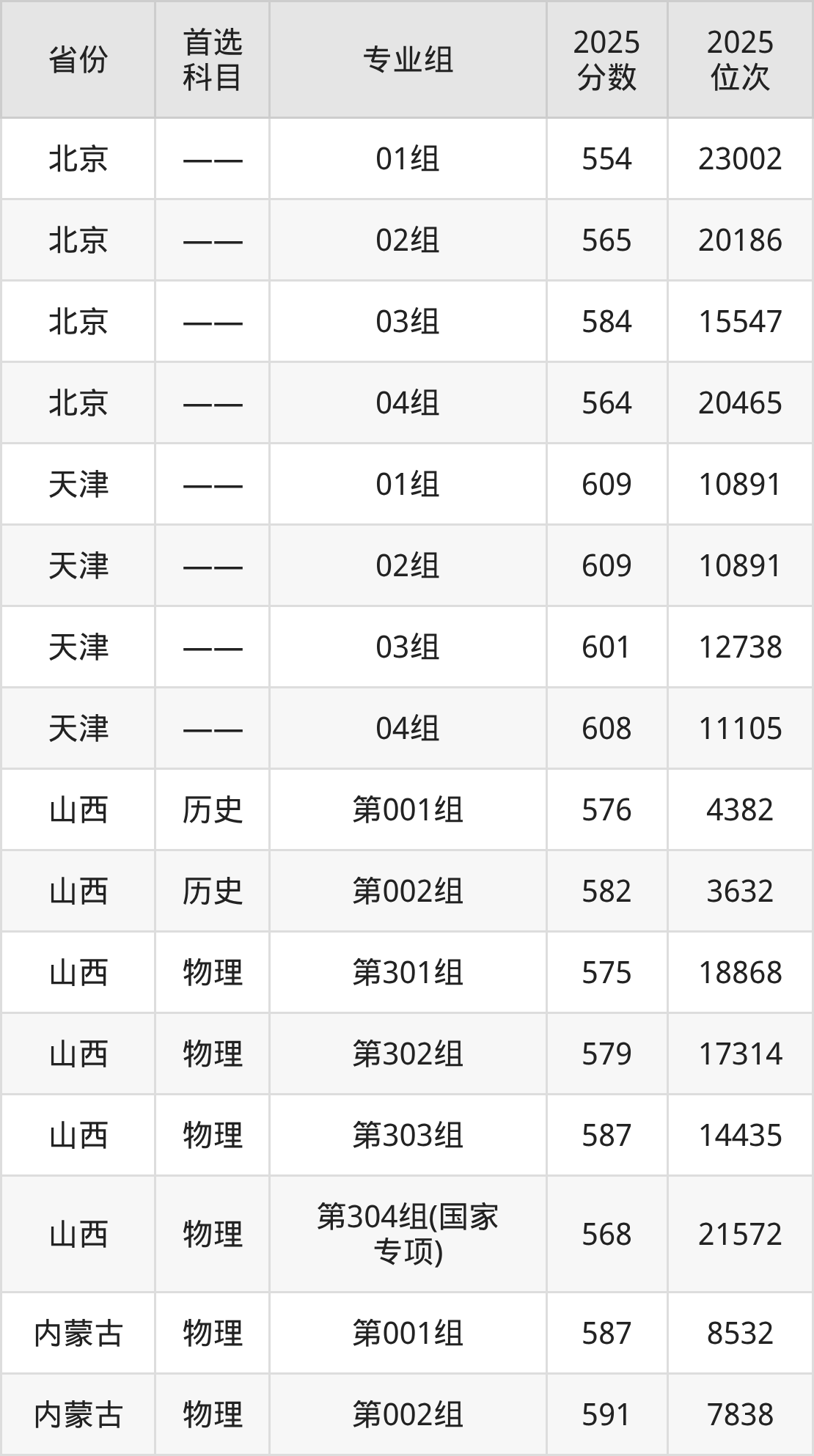 因为大部分地区目前只公布了院校(专业组)分数线,为了方便2026年考生参考,本文就整理出中国民航大学在全国各省不同科类的最低分:
