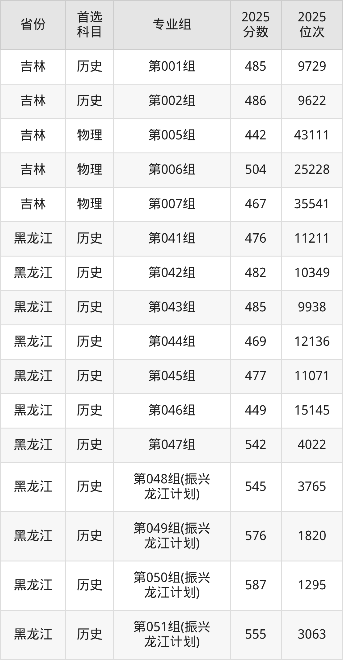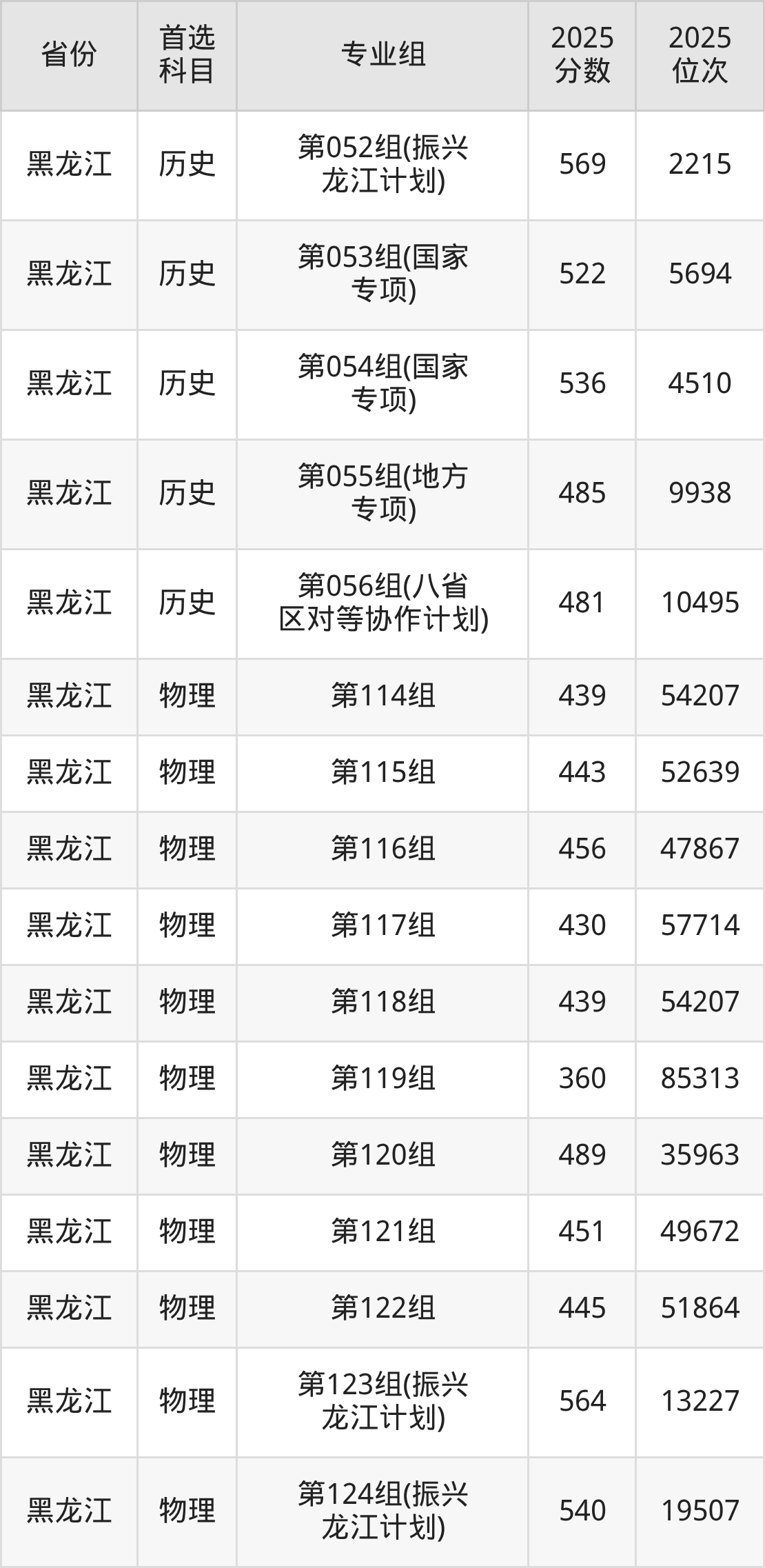 因为大部分地区目前只公布了院校(专业组)分数线,为了方便2026年考生参考,本文就整理出哈尔滨师范大学在全国各省不同科类的最低分: