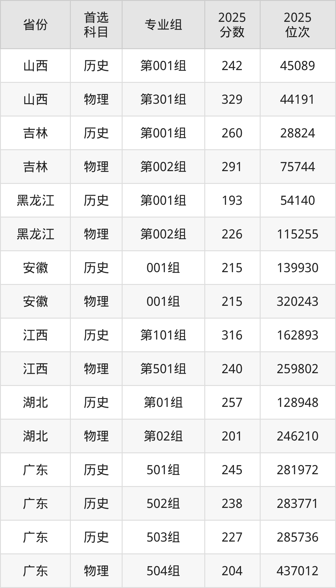 因为大部分地区目前只公布了院校(专业组)分数线,为了方便2026年考生参考,本文就整理出广东碧桂园职业学院在全国各省不同科类的最低分: