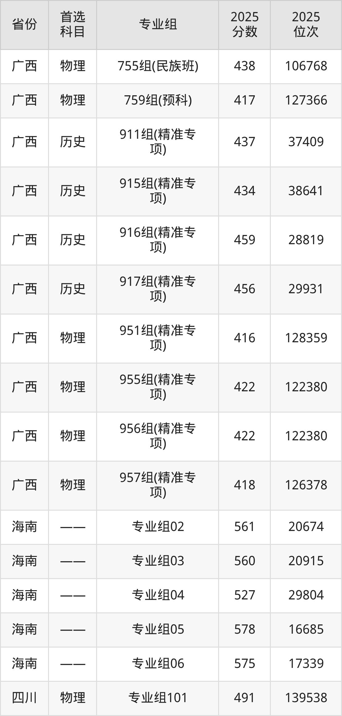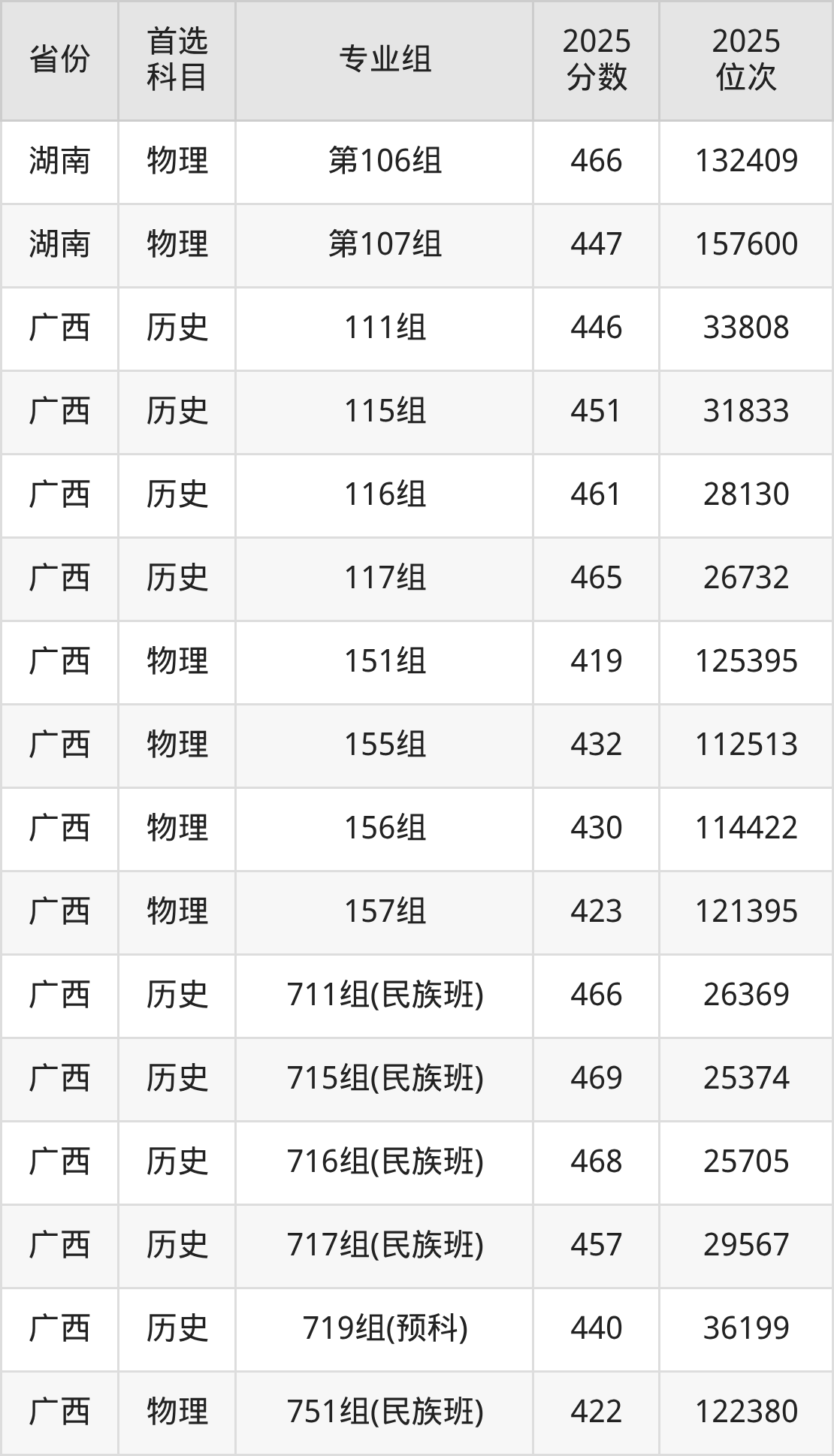因为大部分地区目前只公布了院校(专业组)分数线,为了方便2026年考生参考,本文就整理出百色学院在全国各省不同科类的最低分: