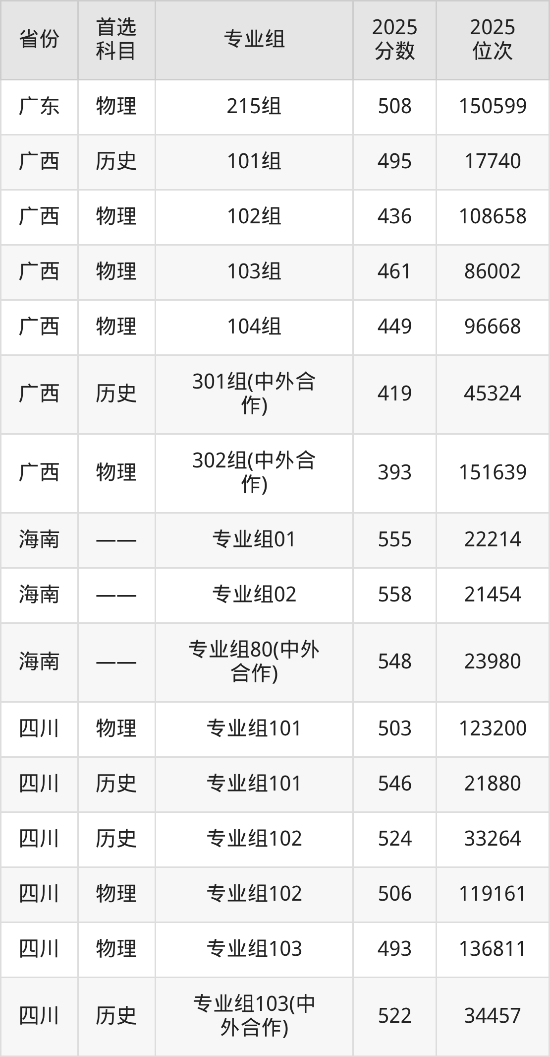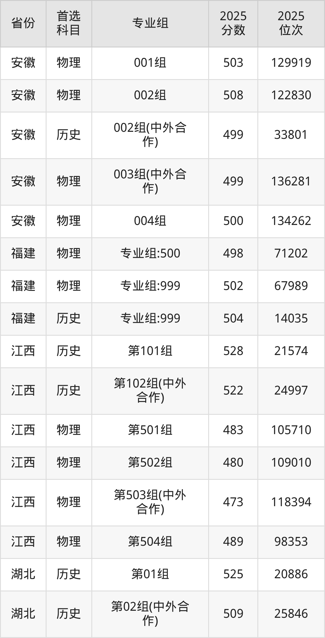 因为大部分地区目前只公布了院校(专业组)分数线,为了方便2026年考生参考,本文就整理出河北金融学院在全国各省不同科类的最低分: