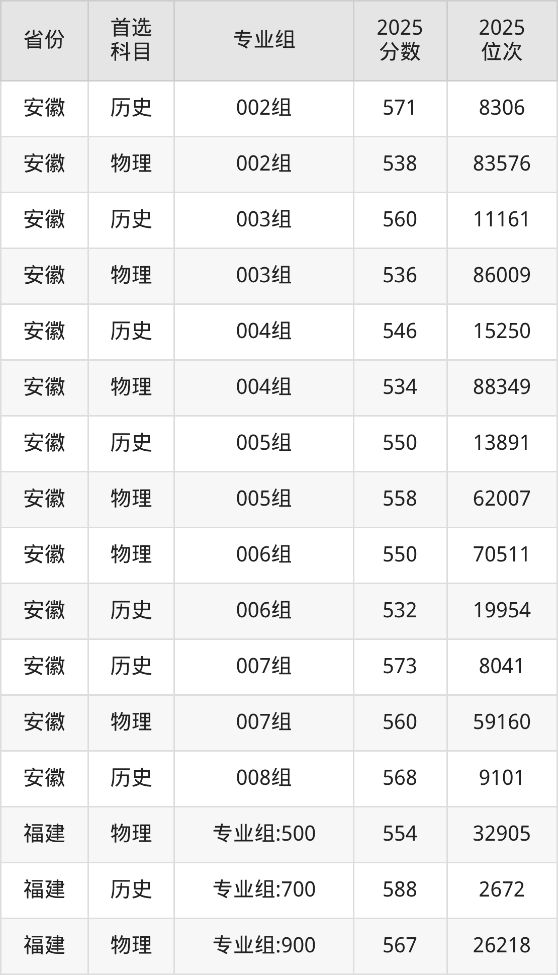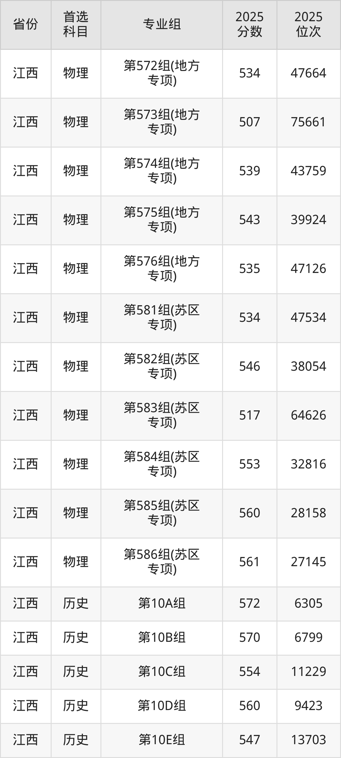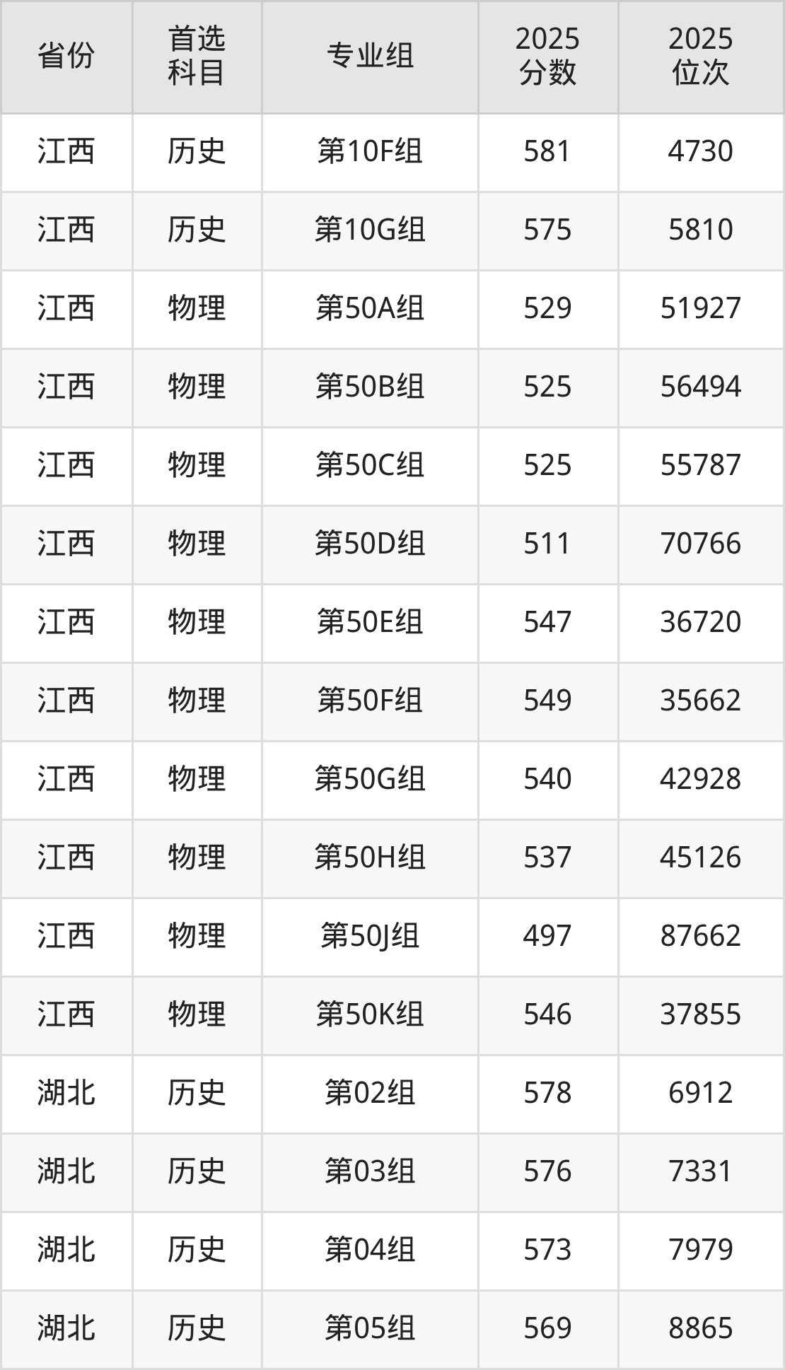 因为大部分地区目前只公布了院校(专业组)分数线,为了方便2026年考生参考,本文就整理出江西师范大学在全国各省不同科类的最低分: