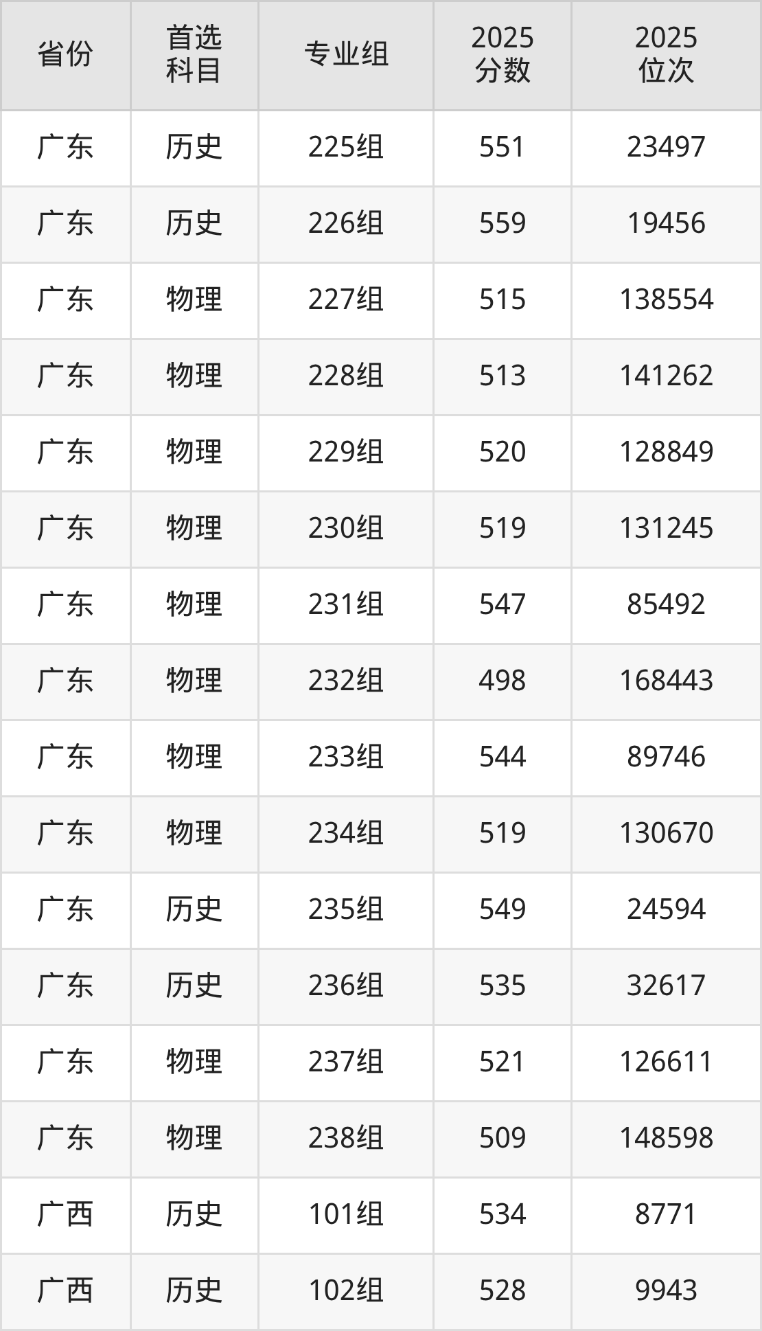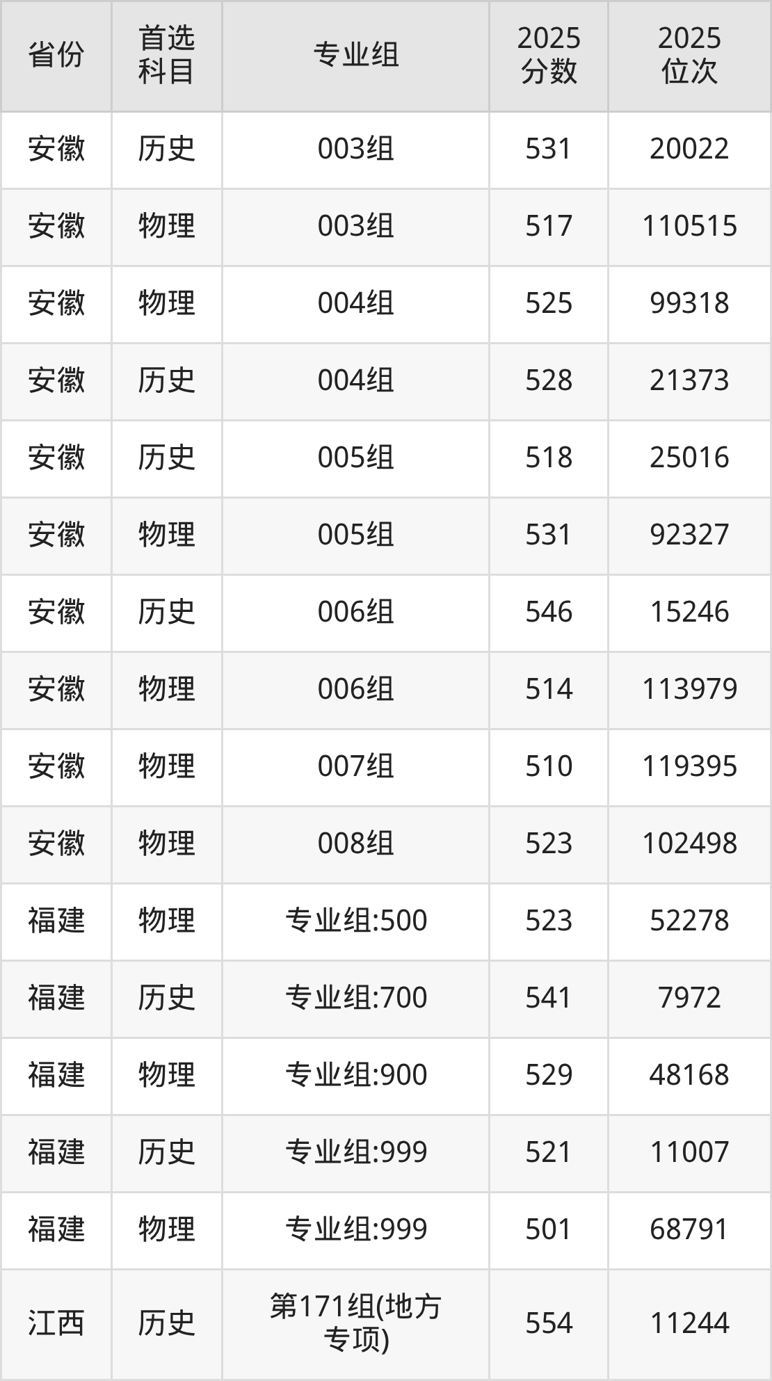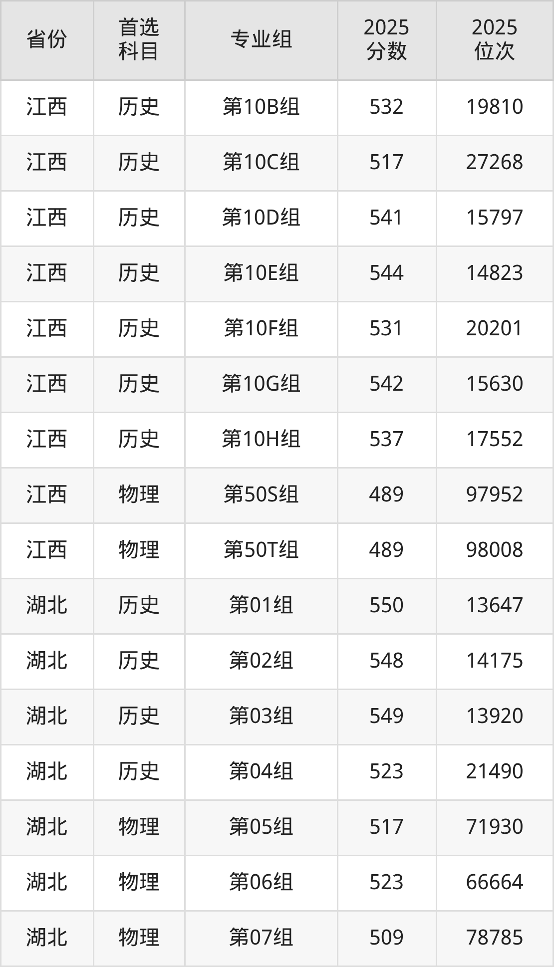 因为大部分地区目前只公布了院校(专业组)分数线,为了方便2026年考生参考,本文就整理出赣南师范大学在全国各省不同科类的最低分: