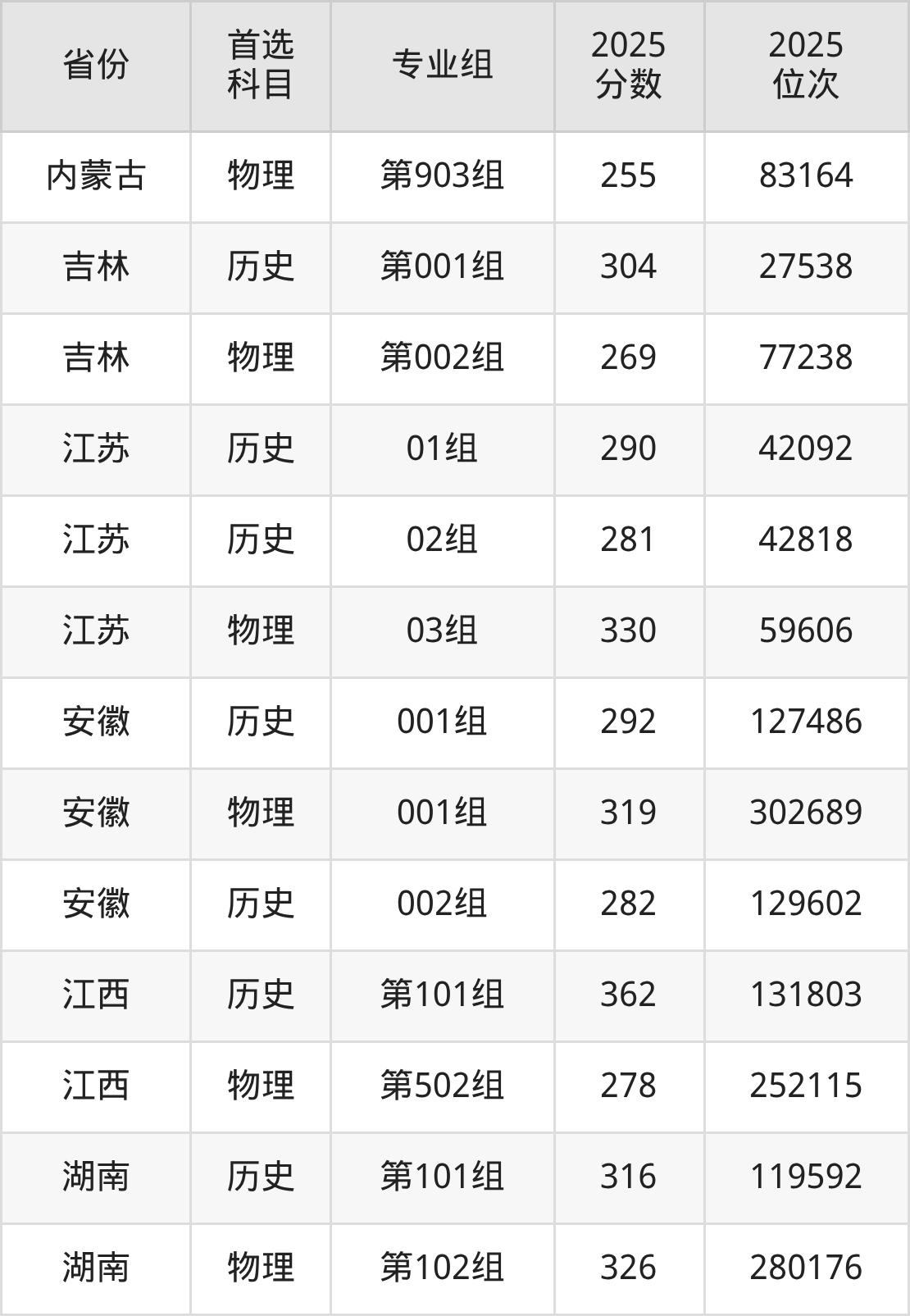 因为大部分地区目前只公布了院校(专业组)分数线,为了方便2026年考生参考,本文就整理出扎兰屯职业学院在全国各省不同科类的最低分: