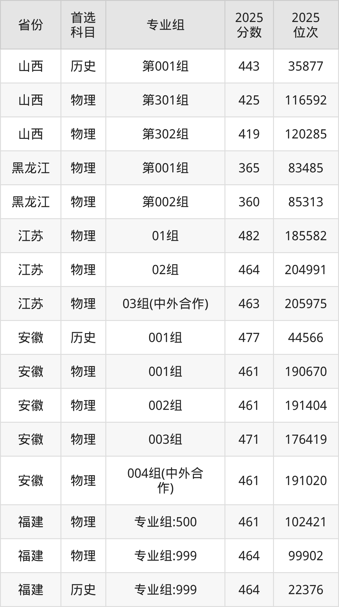 因为大部分地区目前只公布了院校(专业组)分数线,为了方便2026年考生参考,本文就整理出泉州信息工程学院在全国各省不同科类的最低分: