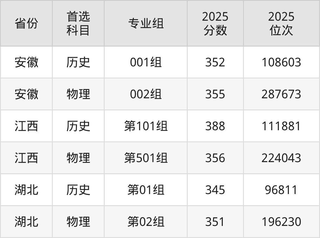 因为大部分地区目前只公布了院校(专业组)分数线,为了方便2026年考生参考,本文就整理出安庆职业技术学院在全国各省不同科类的最低分: