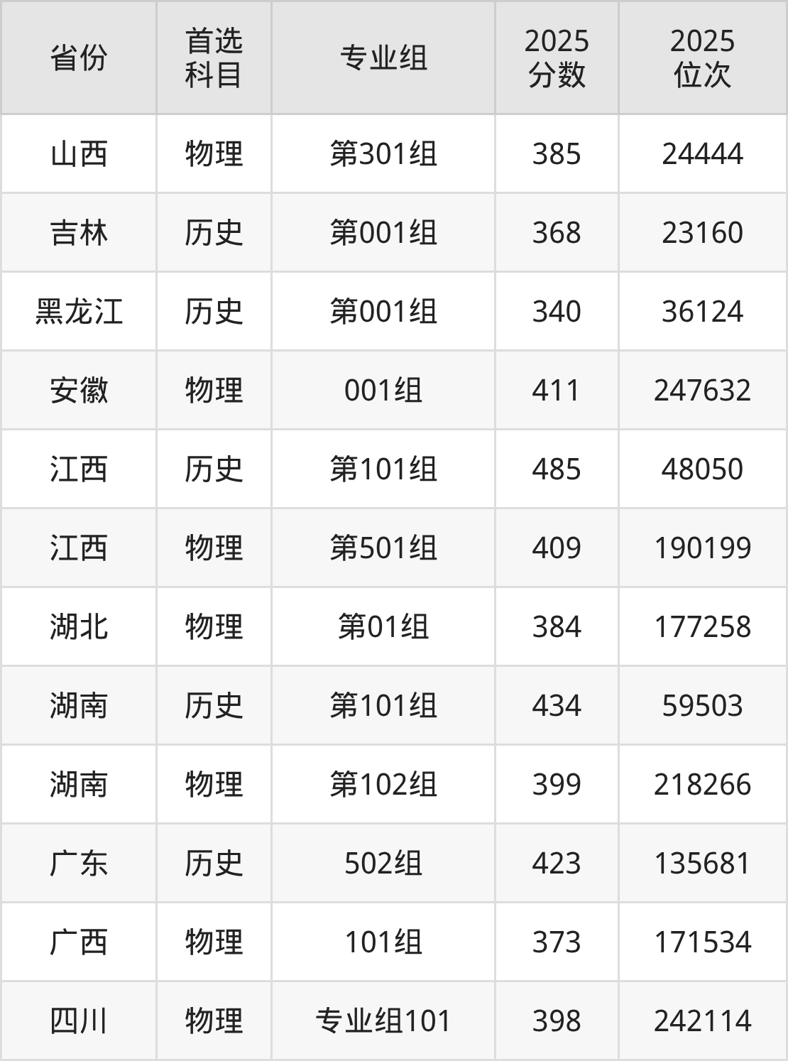 因为大部分地区目前只公布了院校(专业组)分数线,为了方便2026年考生参考,本文就整理出长沙商贸旅游职业技术学院在全国各省不同科类的最低分: