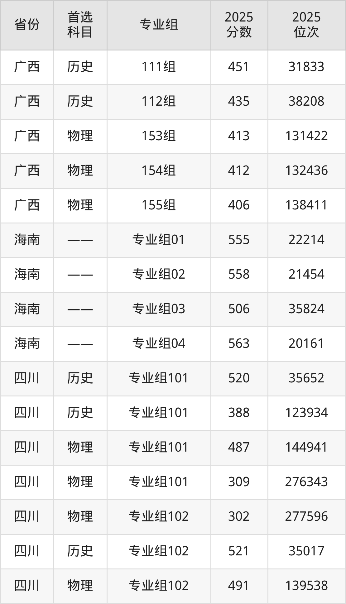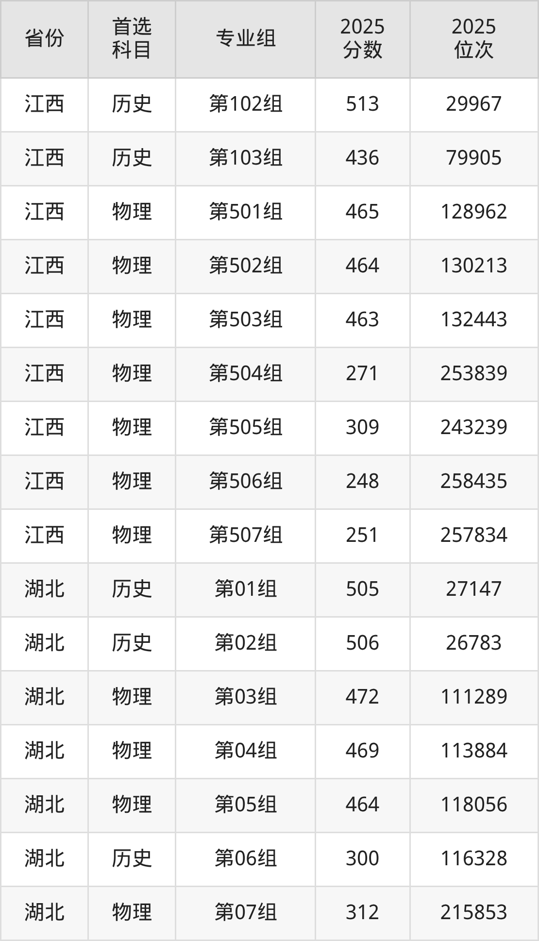 因为大部分地区目前只公布了院校(专业组)分数线,为了方便2026年考生参考,本文就整理出新疆和田学院在全国各省不同科类的最低分: