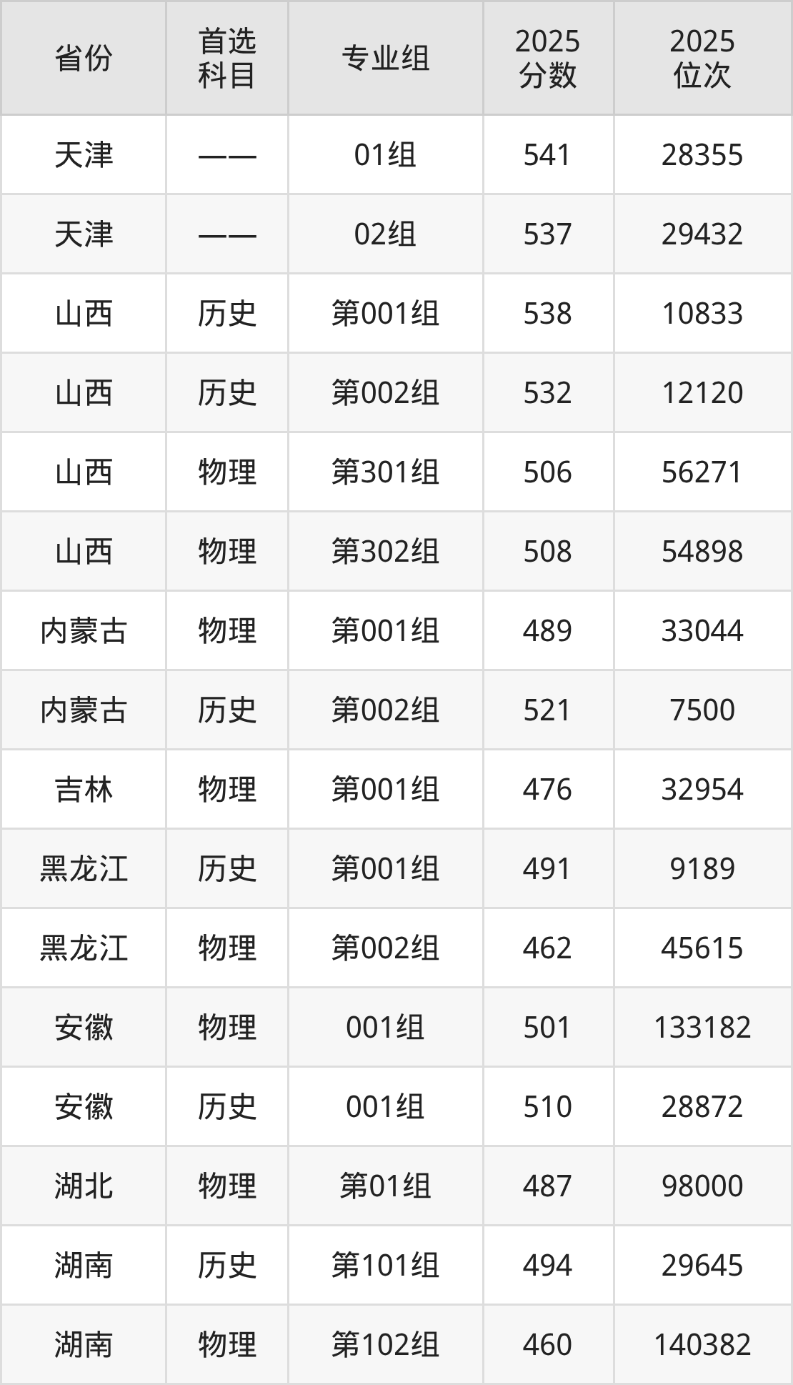 因为大部分地区目前只公布了院校(专业组)分数线,为了方便2026年考生参考,本文就整理出唐山学院在全国各省不同科类的最低分: