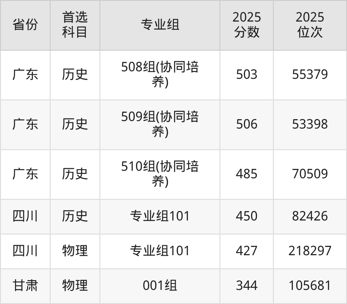 因为大部分地区目前只公布了院校(专业组)分数线,为了方便2026年考生参考,本文就整理出广东工贸职业技术学院在全国各省不同科类的最低分: