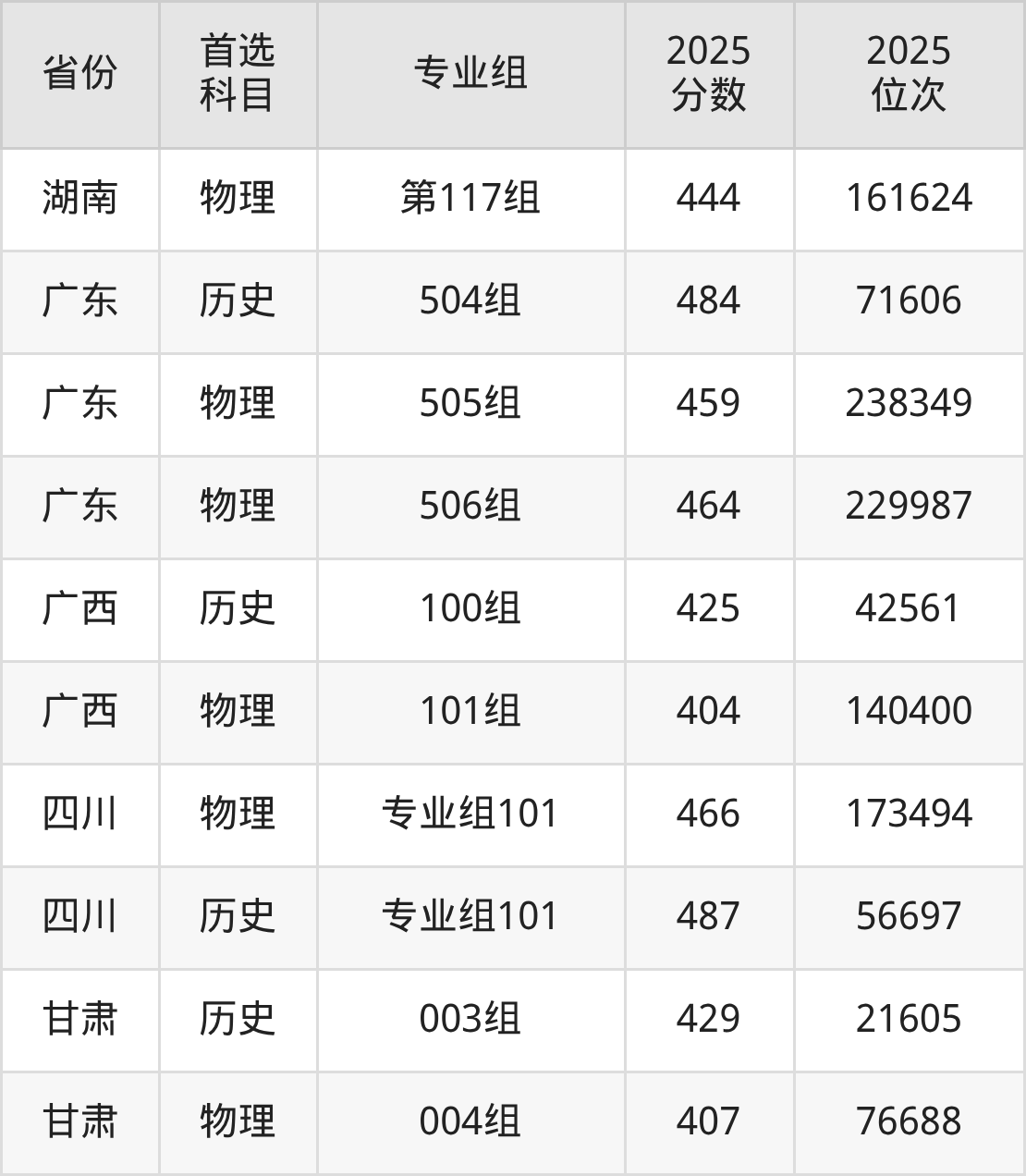 17.四川:物理类466分、173494位,历史类487分、56697位