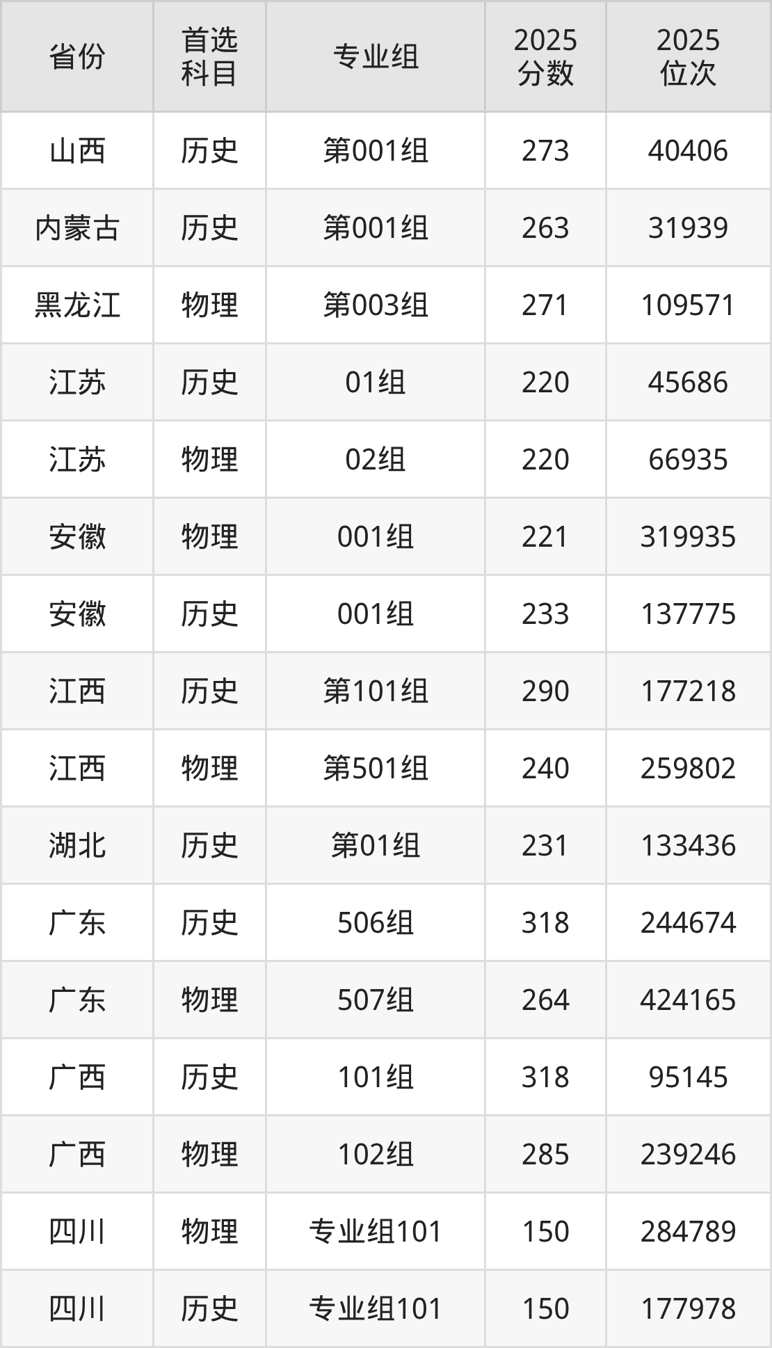 因为大部分地区目前只公布了院校(专业组)分数线,为了方便2026年考生参考,本文就整理出德阳农业科技职业学院在全国各省不同科类的最低分: