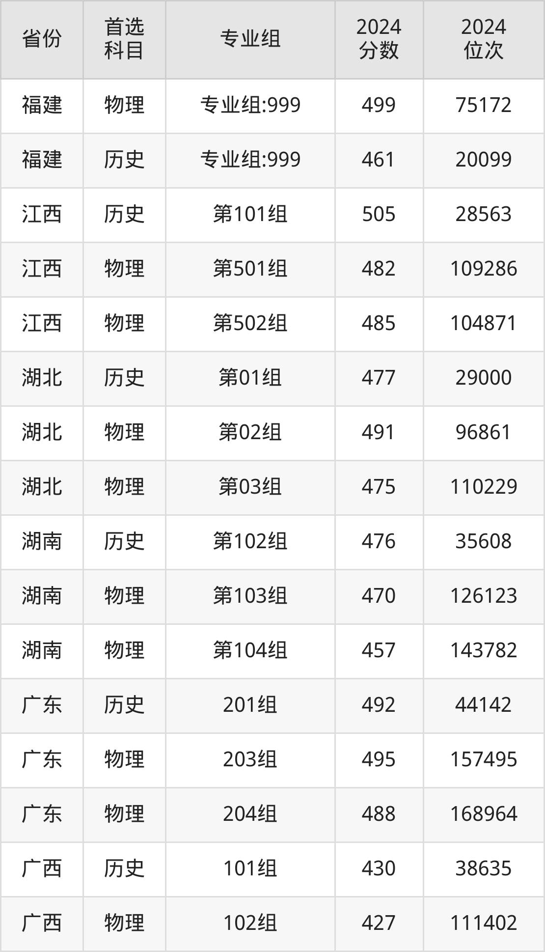 11.福建:历史类461分、20099位,物理类499分、75172位