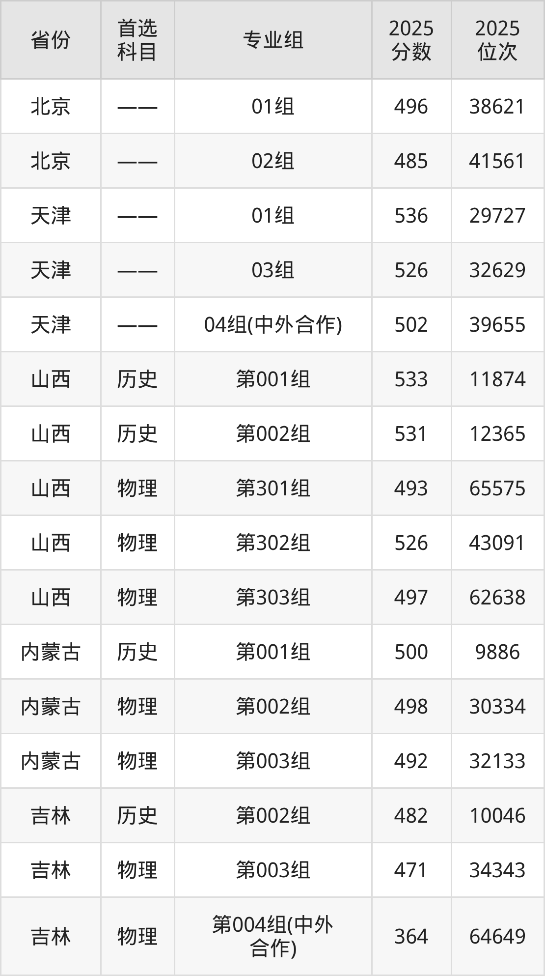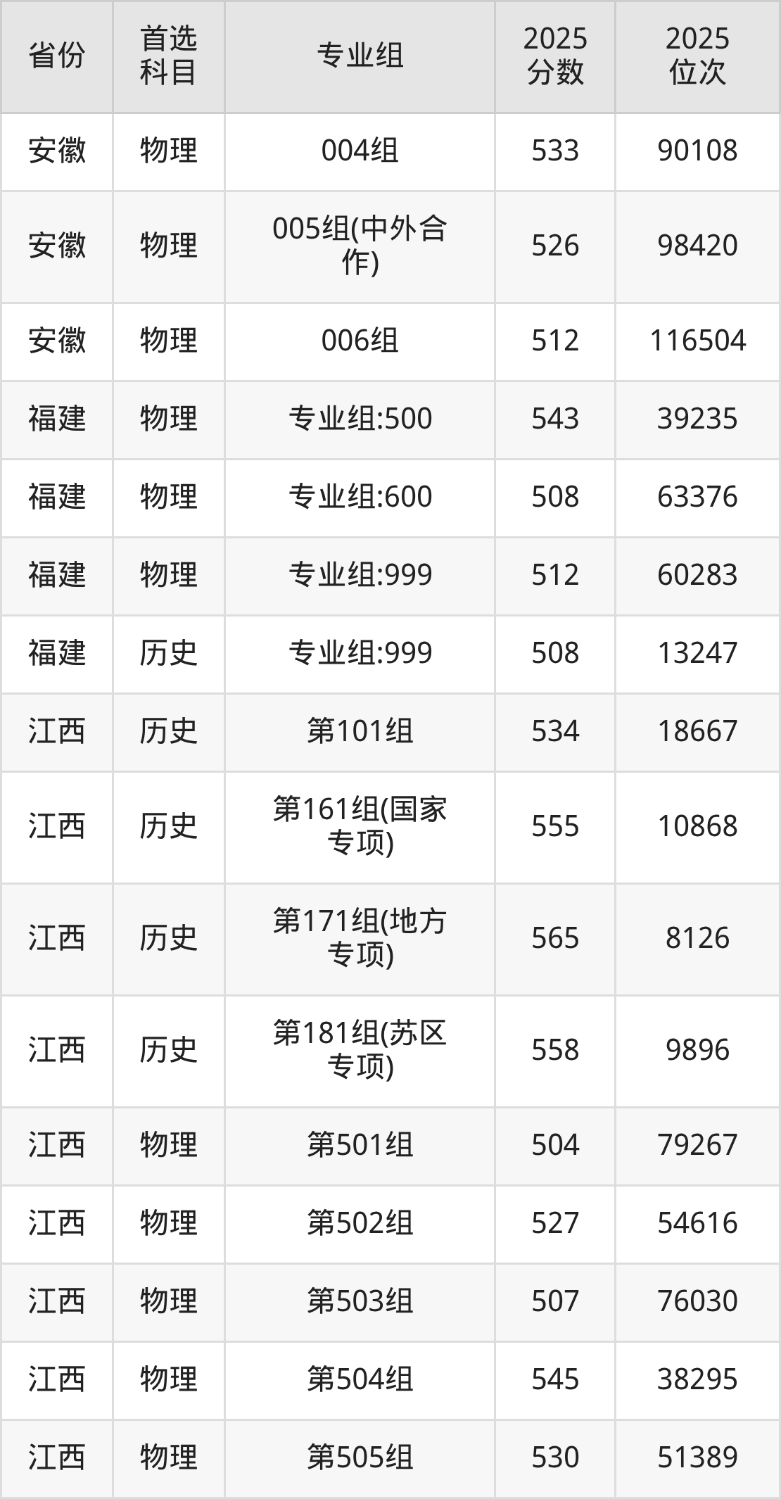 因为大部分地区目前只公布了院校(专业组)分数线,为了方便2026年考生参考,本文就整理出江西水利电力大学在全国各省不同科类的最低分: