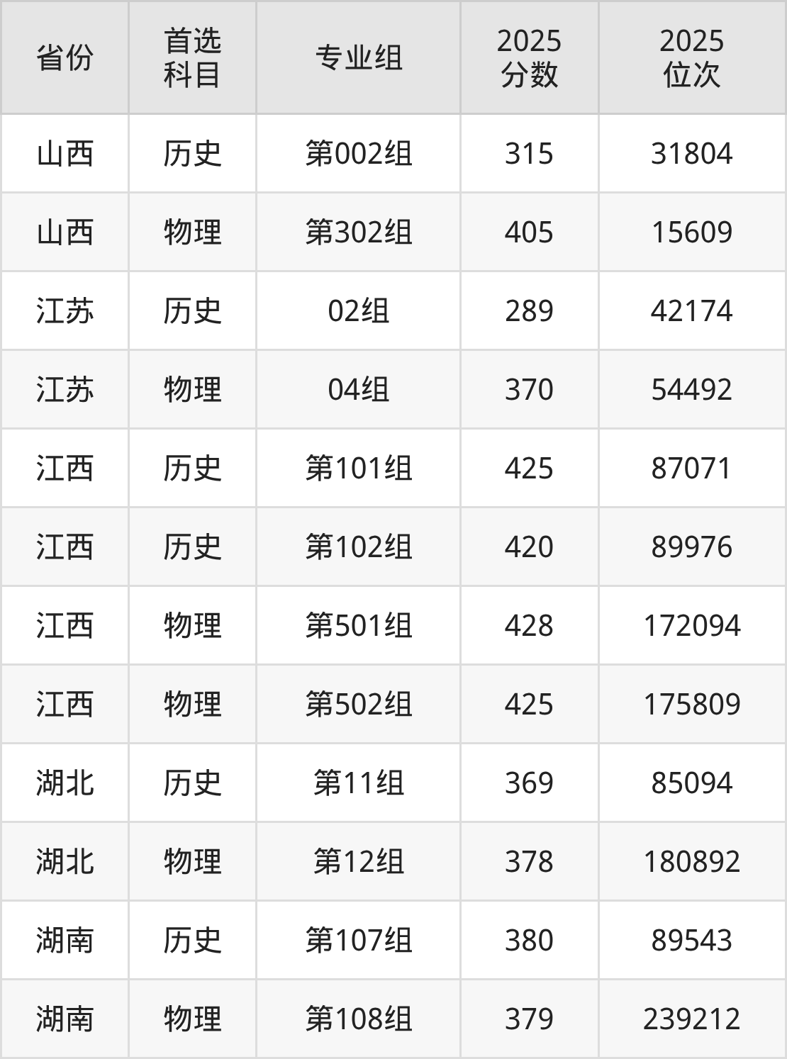 因为大部分地区目前只公布了院校(专业组)分数线,为了方便2026年考生参考,本文就整理出湖南国防工业职业技术学院在全国各省不同科类的最低分: