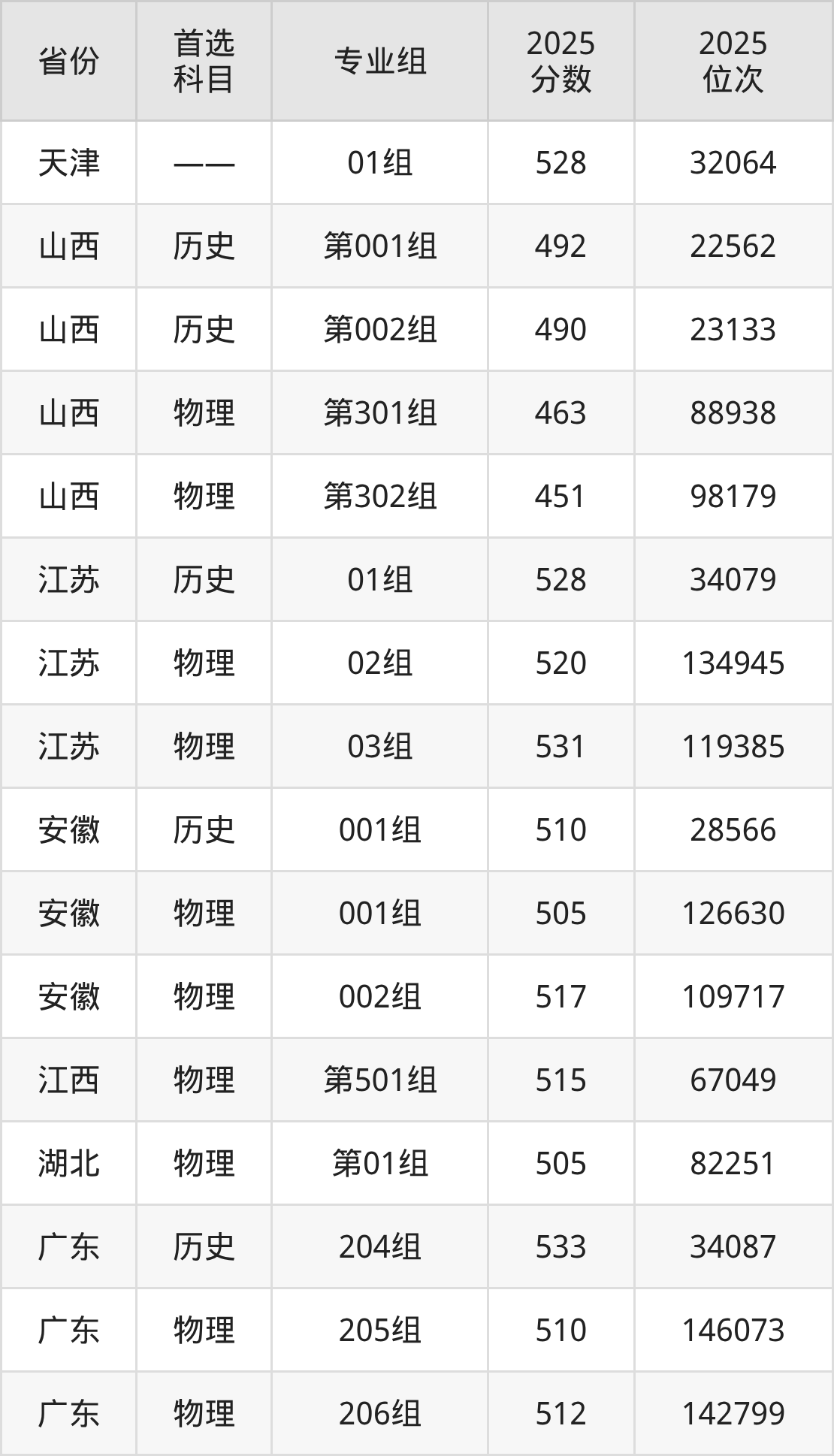 因为大部分地区目前只公布了院校(专业组)分数线,为了方便2026年考生参考,本文就整理出山西科技学院在全国各省不同科类的最低分: